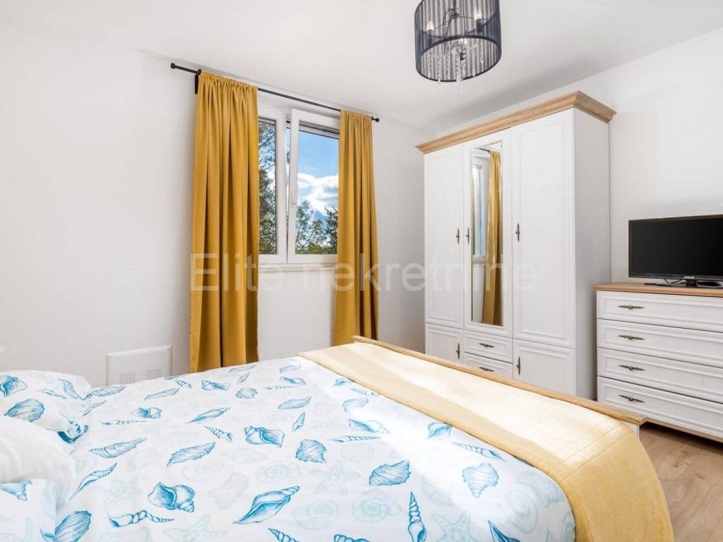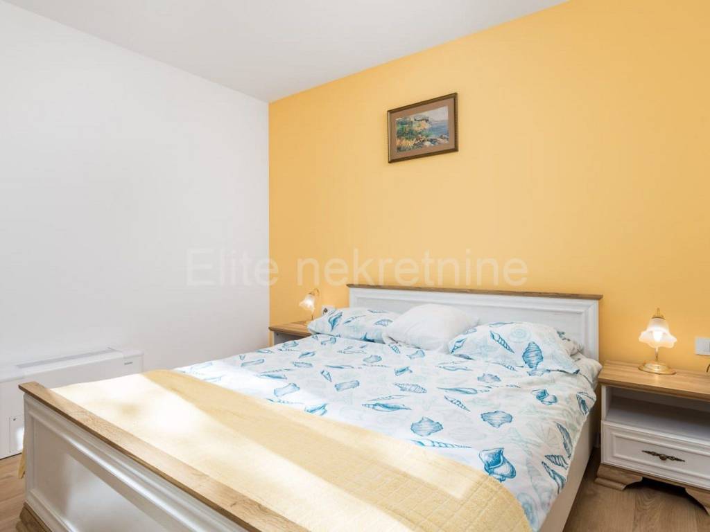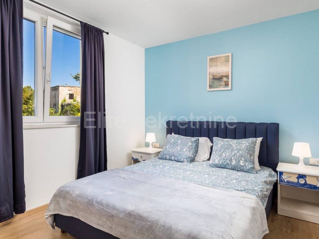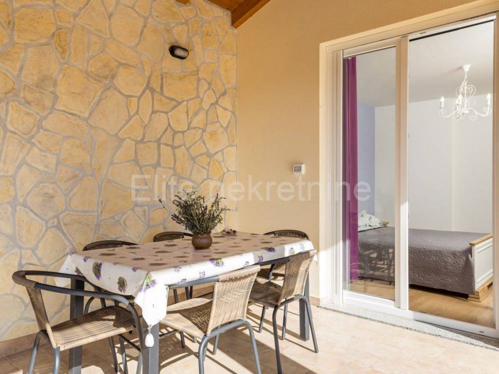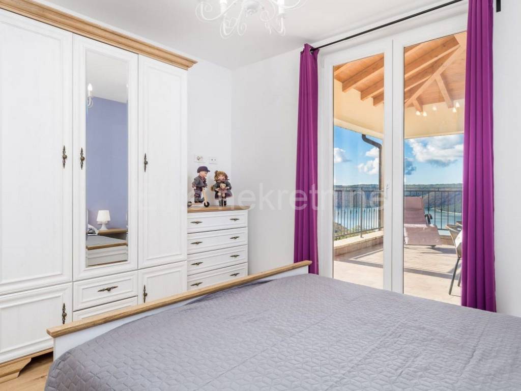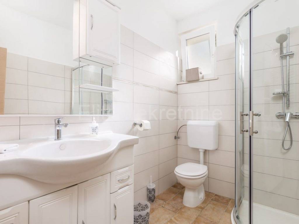 The upper floor consists of 3 bedrooms with 3 bathrooms with toilet, living room, kitchen and dining room, and a large terrace that offers a superb view of the Raska Channel.