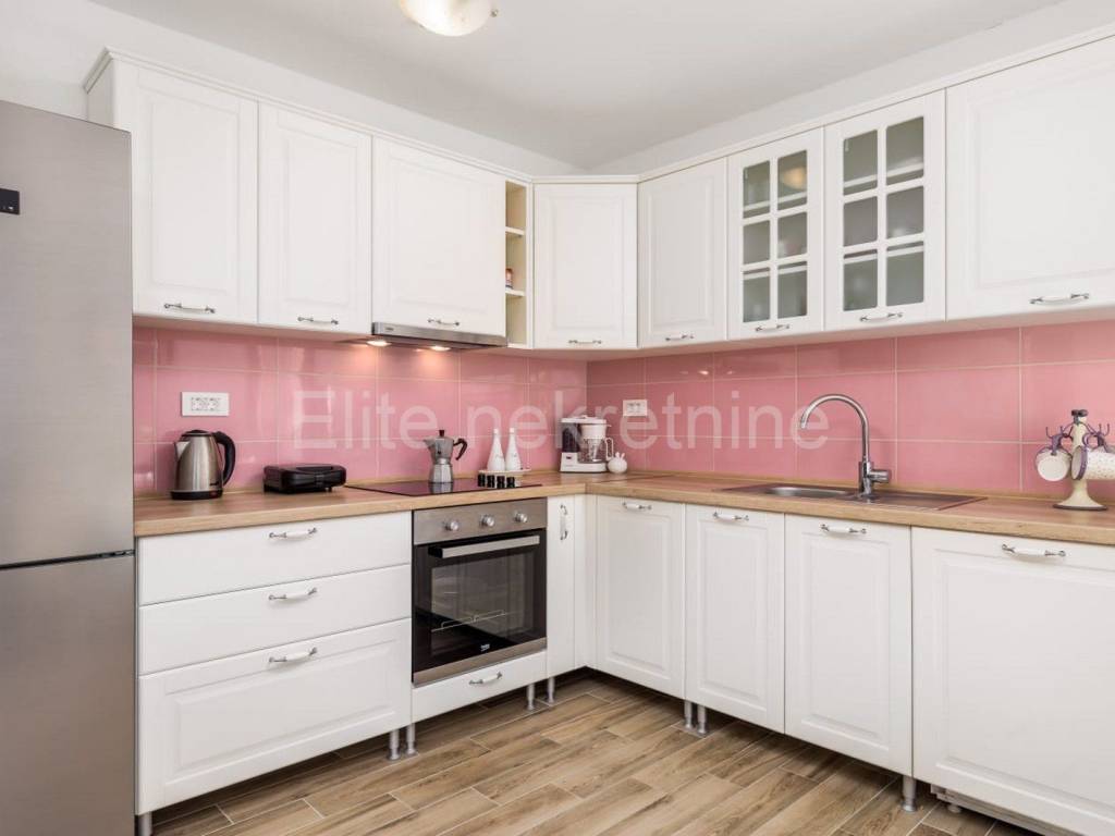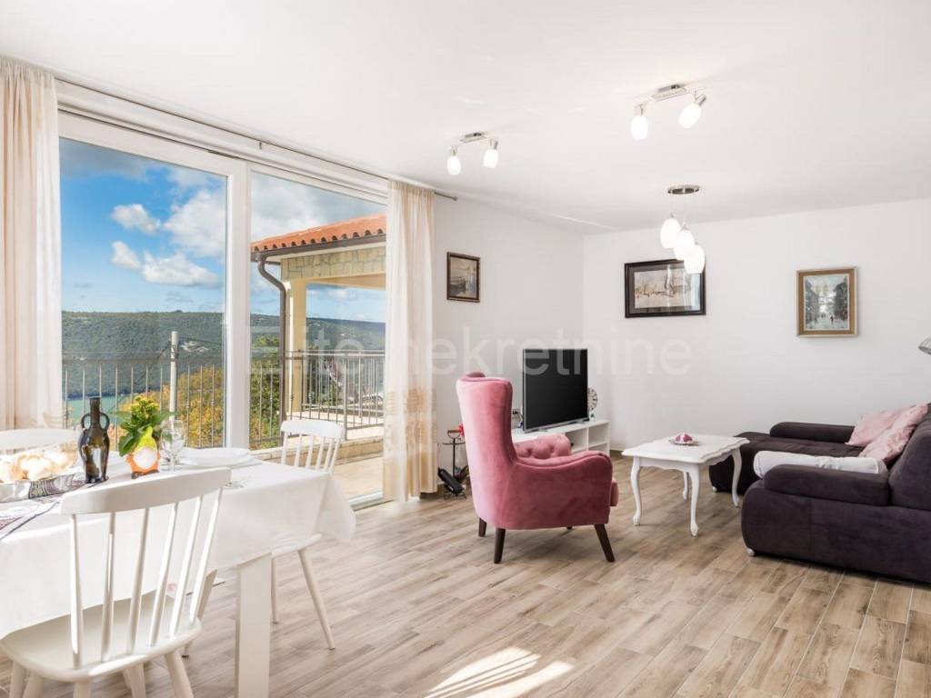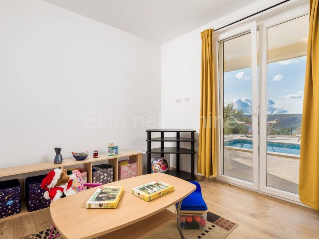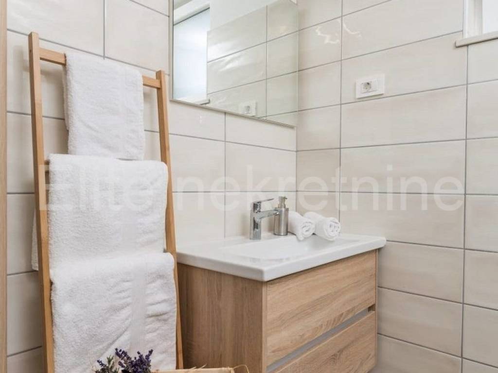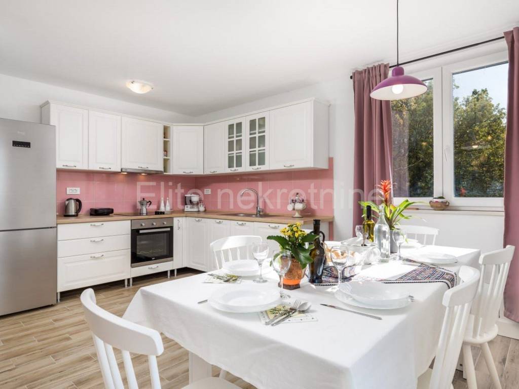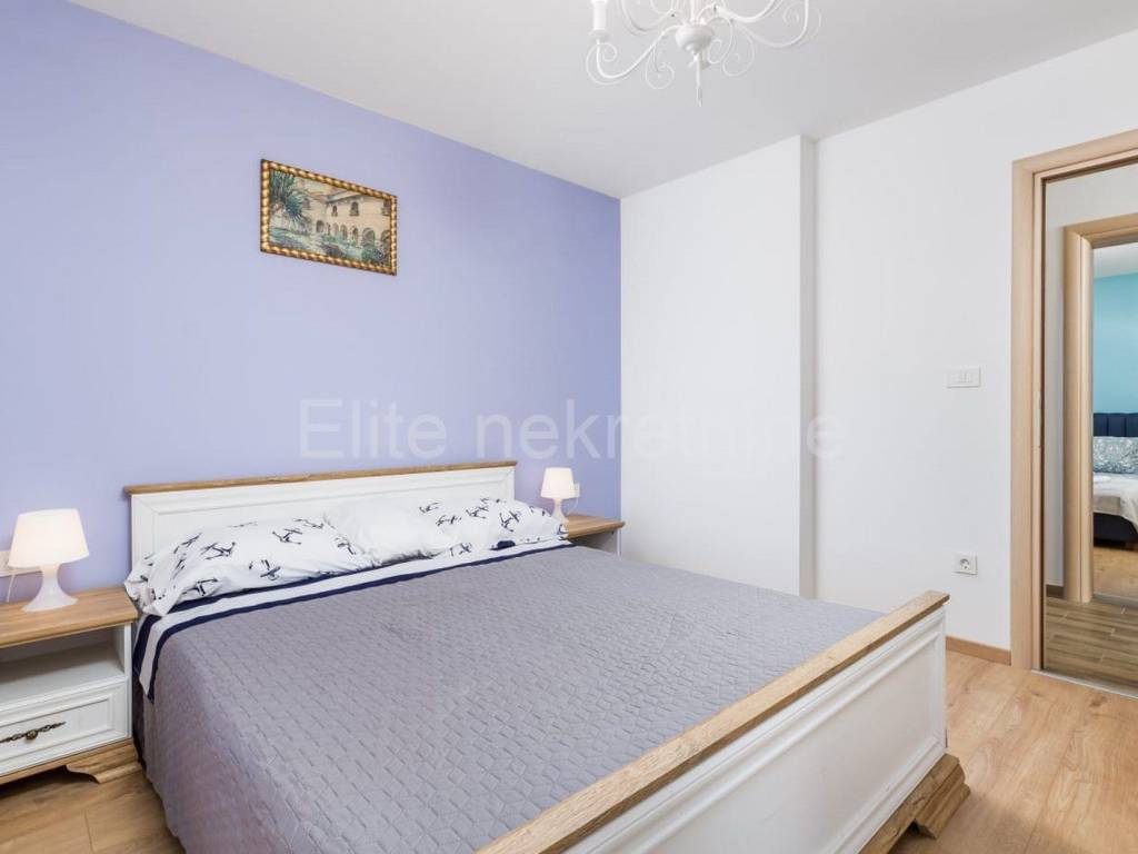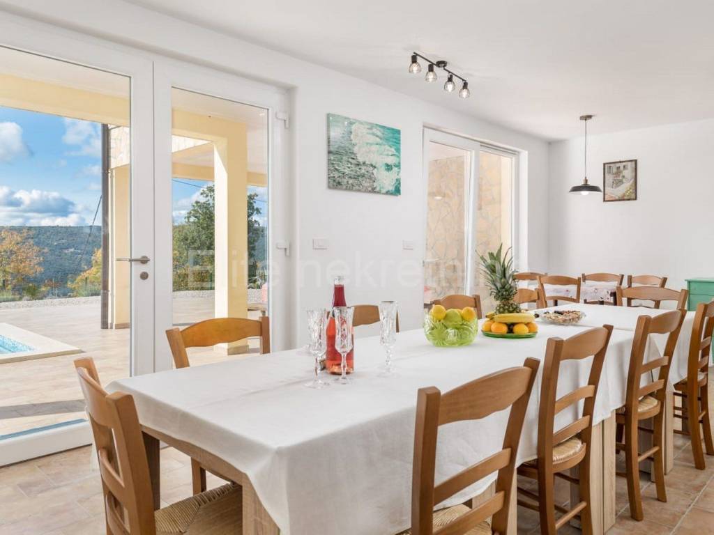 The upper floor consists of 3 bedrooms with 3 bathrooms with toilet, living room, kitchen and dining room, and a large terrace that offers a superb view of the Raska Channel.