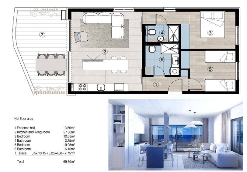 Uživajte u jutarnjoj kavi ili večernjem opuštanju na privatnoj terasi s pogledom na kristalno čisto Jadransko more. Zahvaljujući orijentaciji na sjever i zapad, apartman hvata ugodne morske povjetarce i nezaboravne zalaske sunca.