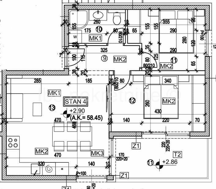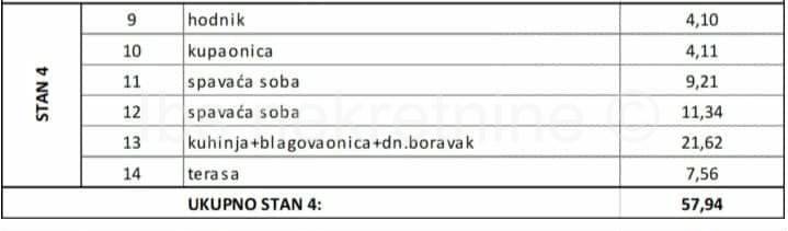 Two-bedroom apartment in a new building Trogir, 900 m from the center A perfect apartment for family life, tourist rental or investment! Located in a quiet location near the UNESCO-listed Trogir, this modern apartment in a new building offers quality construction, a covered terrace and a parking space included in the price. The proximity to schools, kindergartens, shops and the beach makes it ideal for a family or a vacation. Moving in is scheduled for the end of 2026, and payment is possible in stages. The apartment (1st floor) consists of: Kitchen, dining room and living room 21.62 m Hallway 4.11 m Bedroom 1 11.34 m Bedroom 2 9.21 m Bathroom 4.11 m Covered terrace 7.56 m Total area: 57.94 m