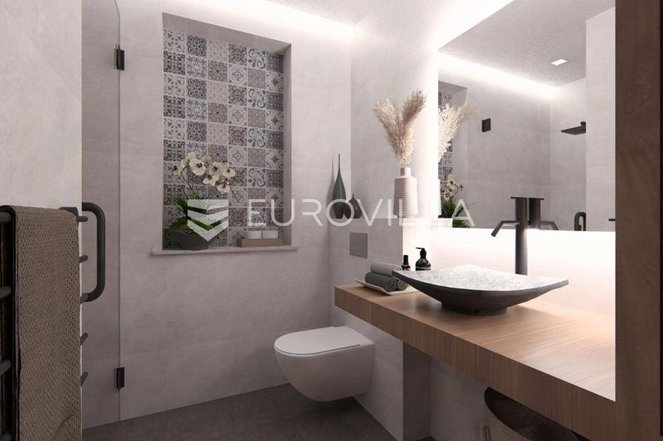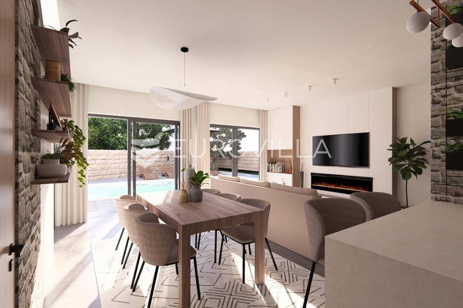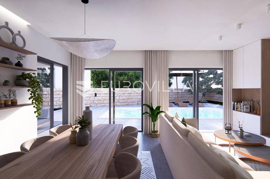 Na prodaju je moderni stan S1 u prizemlju nove zgrade, na izvrsnoj lokaciji u Petrčanima, svega 30 metara od mora i šljunčane plaže. Također, locirana je u najmirnijem i nejelitnijem dijelu Petrčana, Punta Skali. Idealna nekretnina za uživanje u mediteranskom načinu života, spajajući moderan dizajn, privatnost i prirodu.Stan se sastoji od otvorenog prostora kuhinje, blagovaonice i dnevnog boravka, dvije spavaće sobe s ugradbenim ormarima, elegantne kupaonice s tuš kabinom i perilicom rublja te hodnika koji povezuje prostorije.Ukupna podna površina zatvorenog prostora iznosi 63,55 m², uz natkrivenu terasu od 13 m², vanjsku terasu od 58 m², privatni vrt od 101,53 m² te dva parkirna mjesta (natkriveno i nenatkriveno). Stan ima i privatni vanjski bazen veličine 7,6 × 4 m.Visoki standardi opreme uključuju:multisplit klima uređaje,prostrane staklene stijene koje donose obilje dnevnog svjetla,kvalitetne podove i keramiku 1. klase,kamin i L-kuhinju sa šankom i svim aparatima.Svi priključci su dostupni (struja, voda, kanalizacija).Mirna lokacija, daleko od gradske vreve, a s brzom povezanošću sa Zadrom i svim važnim sadržajima. Idealno za život ili turističko ulaganje.Cijena je 5.200 EUR/m² s mogućnošću kupnje u fazama putem javnog bilježnika, što štiti kupca i osigurava sigurnost ulaganja.Dodatne informacije - udaljenost od važnijih lokacija:More: 30m / Plaža: 40m / Mjesto za brod: 30mKupovina: 300m / Ugostiteljski objekti: 250mZadar: 11km / Zračna luka: 23km / Autocesta: 31kmPetrčane su šarmantno dalmatinsko mjesto smješteno samo 12 km od Zadra, poznato po dugim šljunčanim plažama i kristalno čistom moru. Ovo nekadašnje ribarsko mjesto danas nudi savršenu kombinaciju mira, prirode i turističkih sadržaja, uključujući lokalne restorane i mogućnosti za vodene sportove. Blizina povijesnih gradova Zadra i Nina dodatno povećava atraktivnost Petrčana za život i investicije u nekretnine.Za više informacija i dogovor o razgledavanju, slobodno nas kontaktirajte i osigurajte svoj komad jadranskog luksuza!