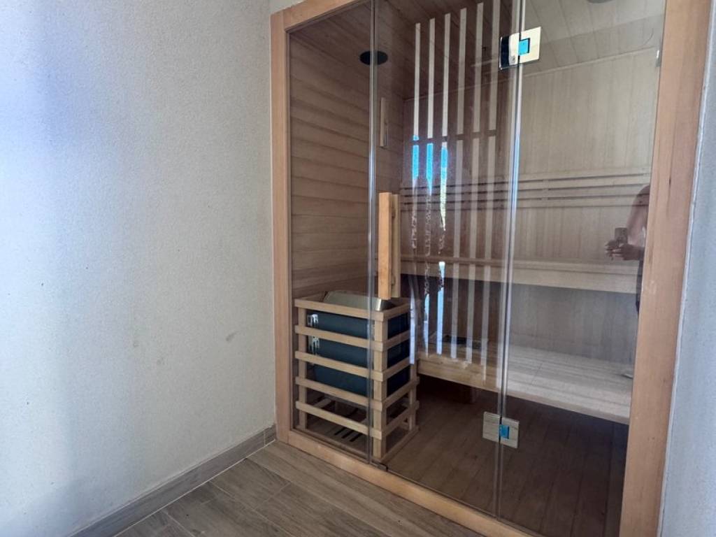 U prizemlju se nalaze hodnik, WC, tehnička prostorija/spremište, soba sa saunom, dječja soba, kuhinja s blagovaonicom i dnevni boravak s izlazom na veliku terasu (20,16 m2) i pristupom bazenu.
