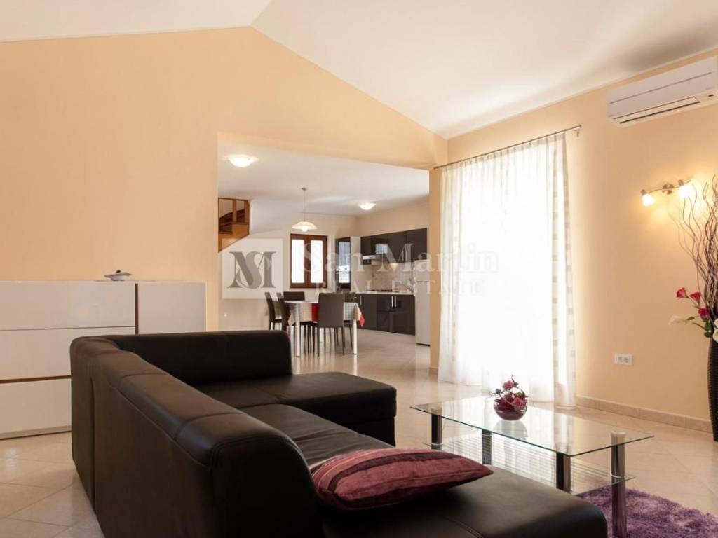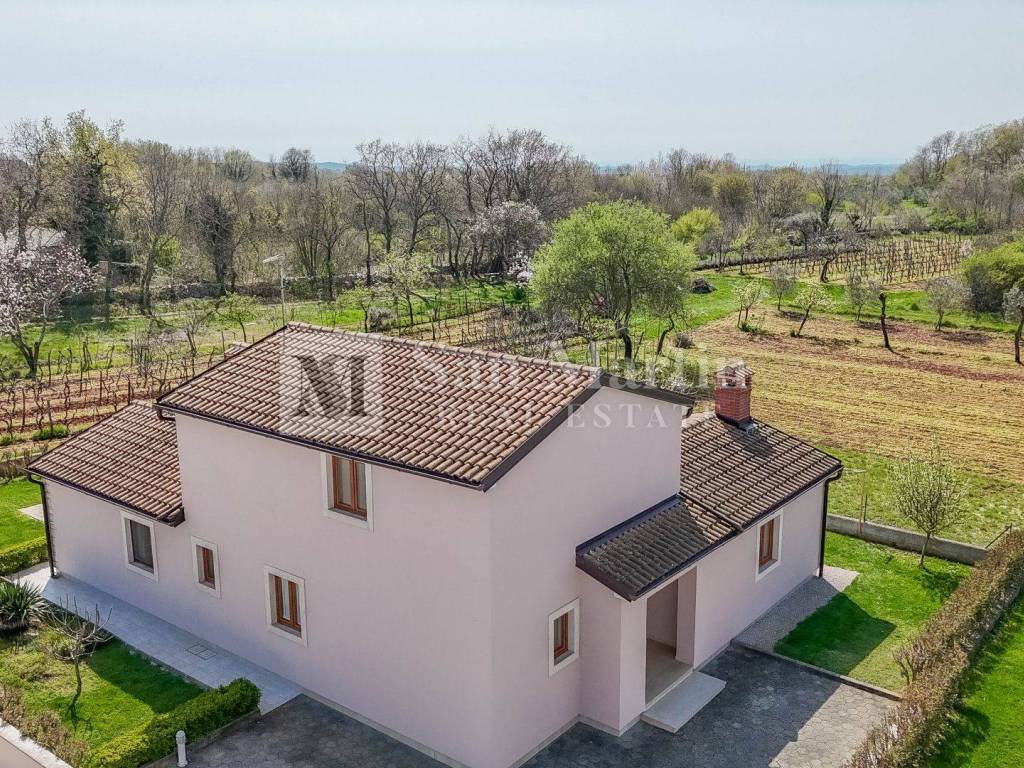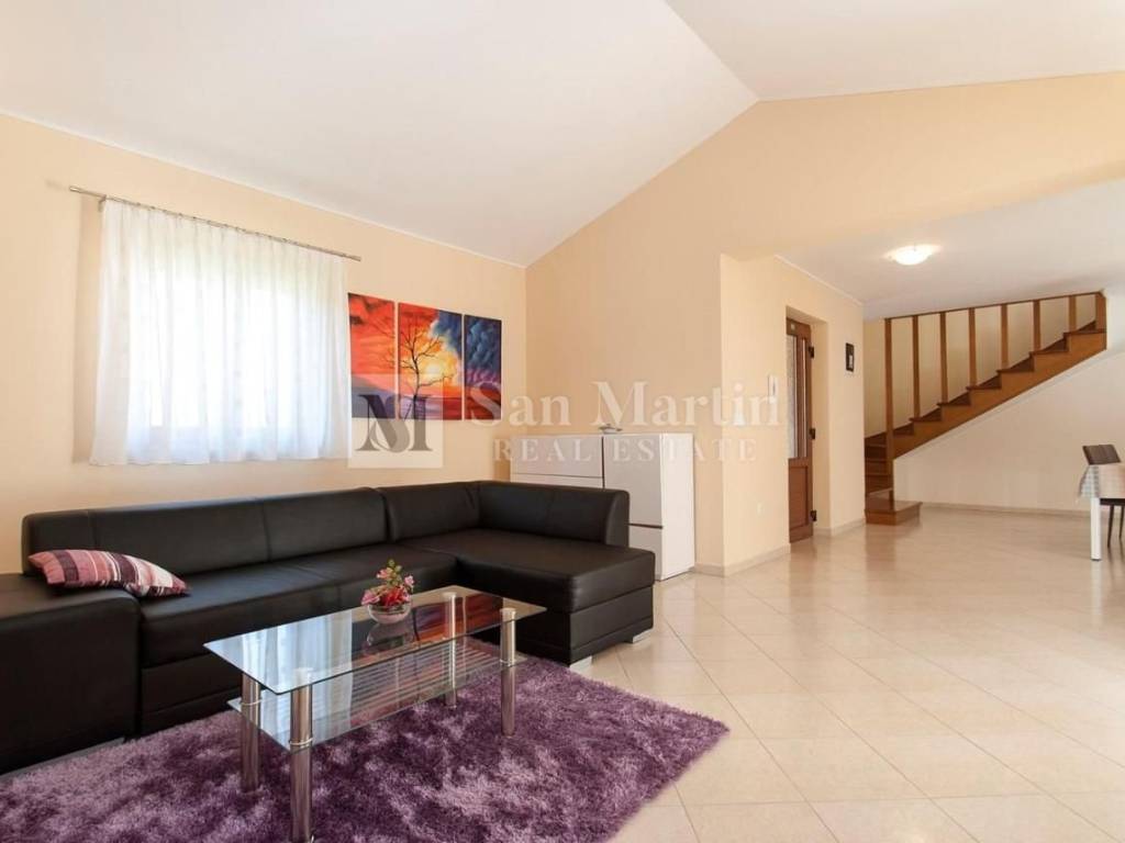 Near the town of Poreč, on a plot of 598 m2, this detached house is located. The property, with a total area of 140 m2, extends over the ground floor and first floor. The ground floor has a spacious living room, kitchen and dining room, one bedroom and a bathroom. While the first floor has two more spacious bedrooms, one bathroom and a spacious terrace.
