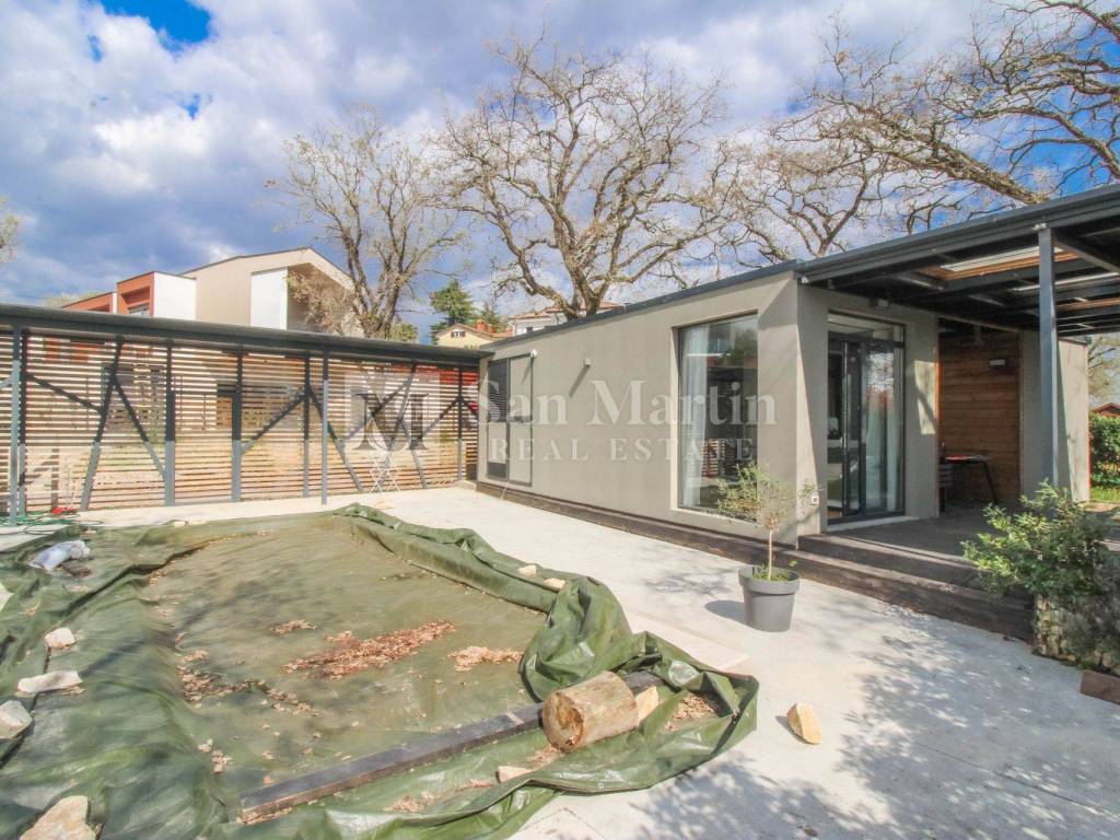 Located near the town of Poreč and all essential amenities, this functional and charming detached ground-floor house is for sale. Its strong connection to the outdoors is emphasized by spacious terraces and large windows in every room, ensuring plenty of natural light.