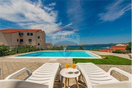An apartment house with a swimming pool is for sale in Kustići on the island of Pag. The house is built on two floors; ground floor and first floor.