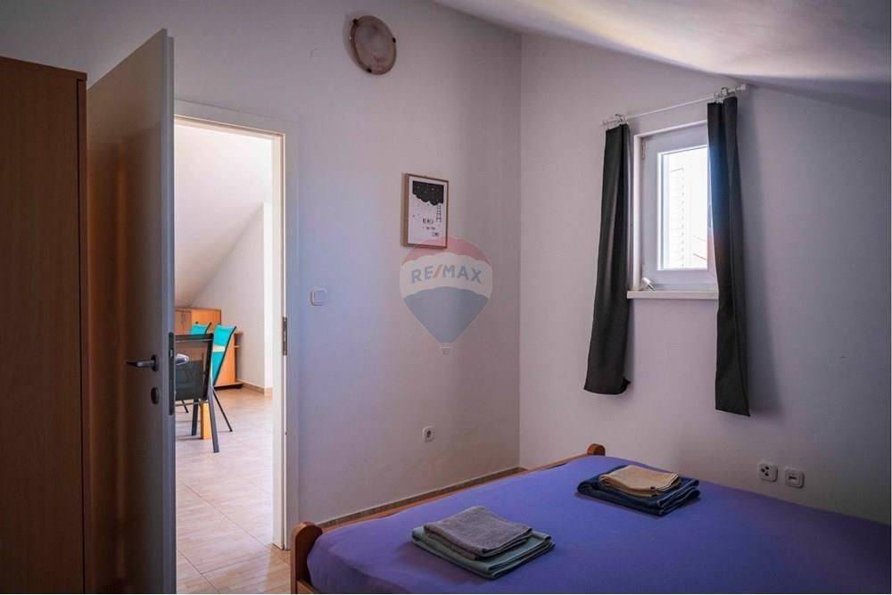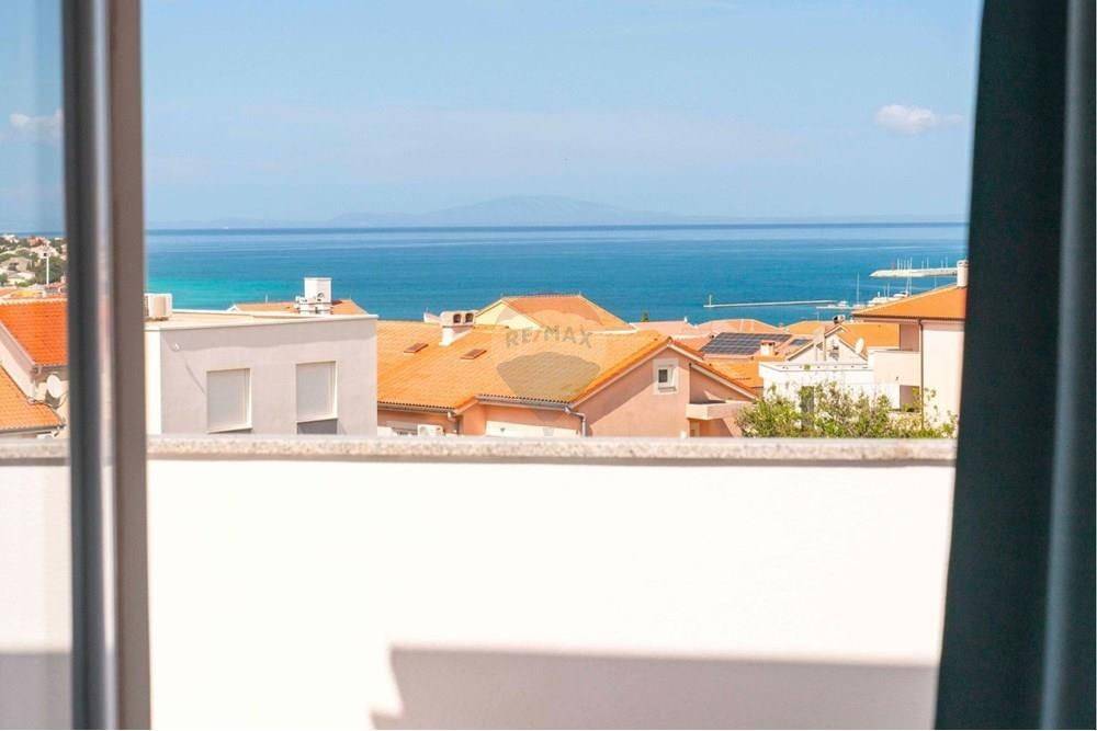Both terraces offer a beautiful view of the sea and Velebit, and each apartment has its own parking space. The total area of both parking spaces is 25 m2.