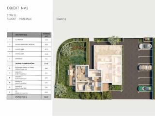 Apartment S1, located on the ground floor, consists of TWO bedrooms, a hallway, a bathroom, a kitchen/living room/dining room, a covered terrace, and a garden.
