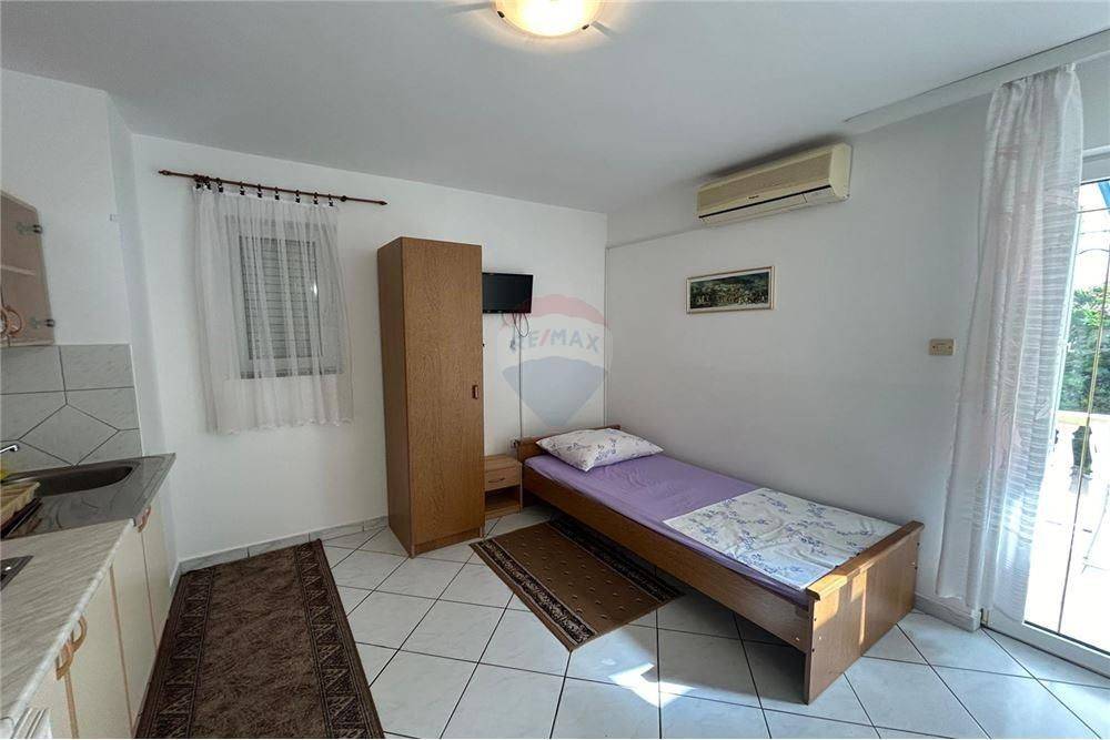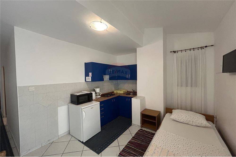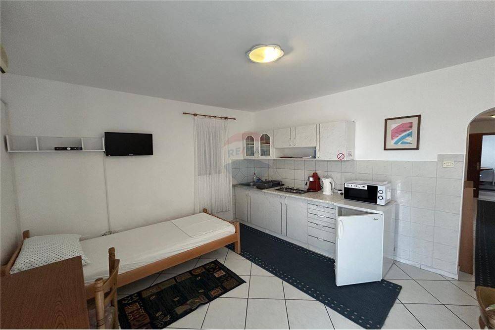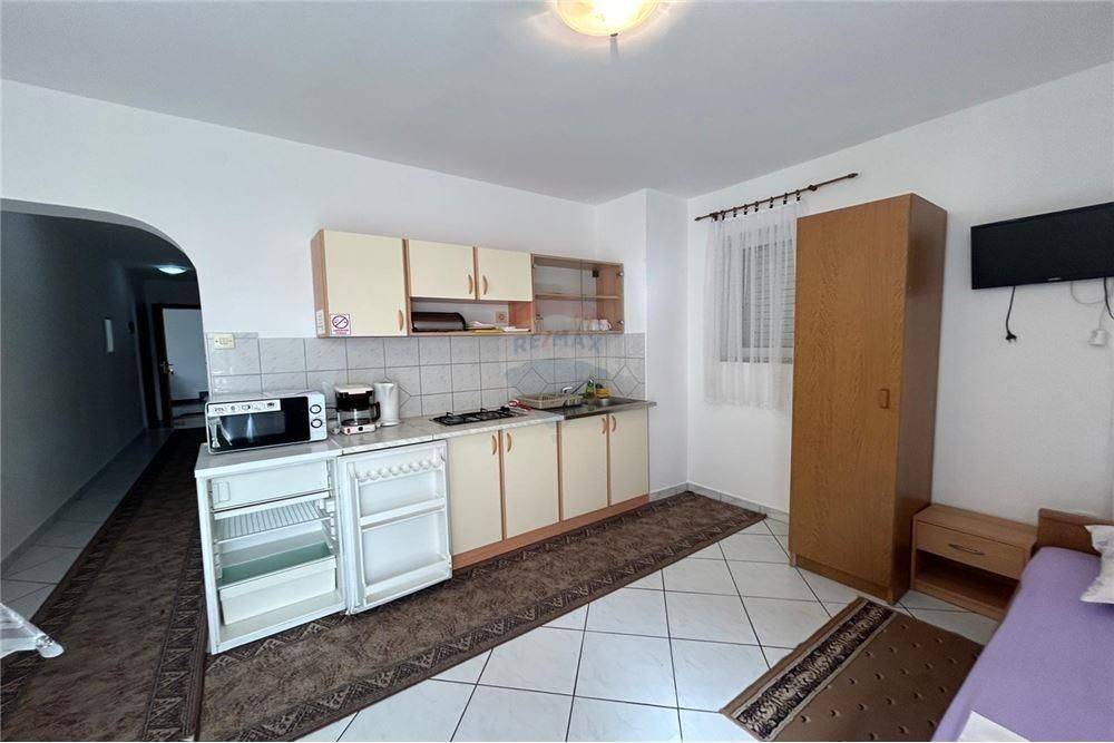 A house for sale in Novalja on the island of Pag, which is an ideal investment for tourist rental as well as for year-round living. It is about 500 meters from the sea. It consists of a total of 5 split-level units, two apartments on the first floor and two on the second floor consisting of one room, bathroom, kitchen and living room. The largest apartment on the ground floor of the house is arranged as an apartment for year-round use, it is equipped with central heating, it consists of three bedrooms, a bathroom, a kitchen and a living room. The apartments are air-conditioned, decorated and intended for well-established tourist rentals with a long tradition. The yard is nicely decorated, with trees and has a covered barbecue.