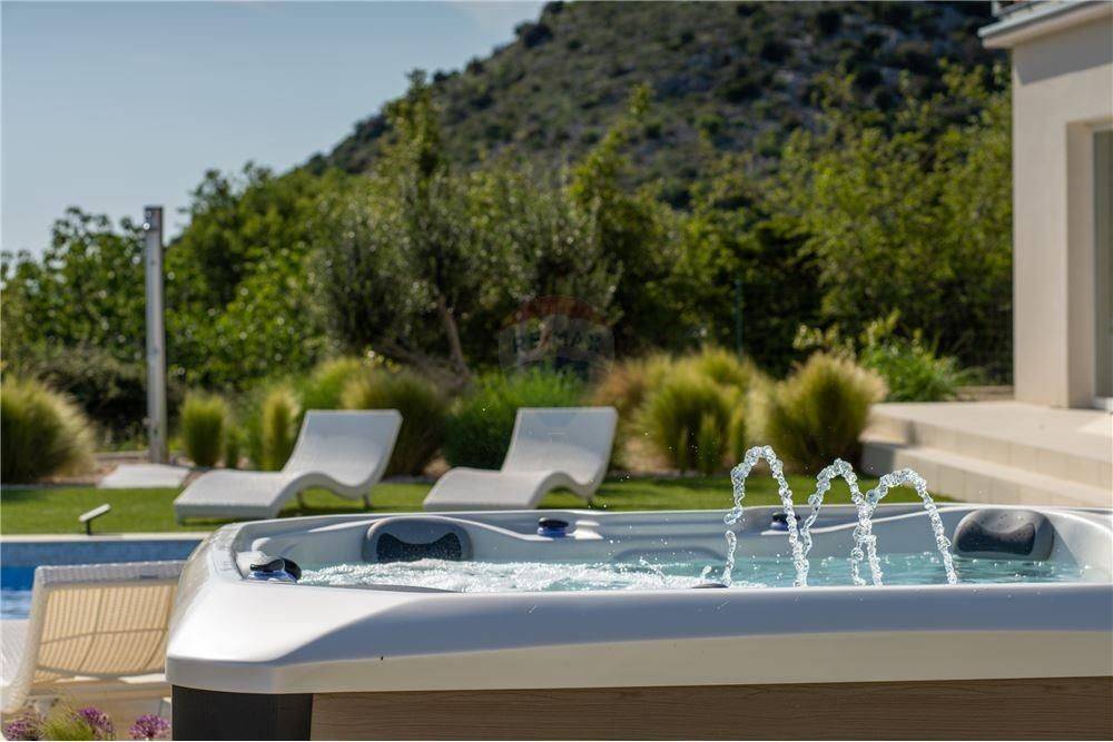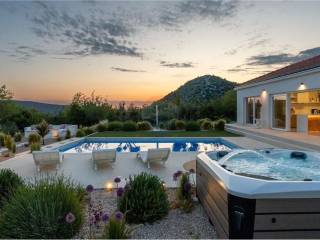A luxurious villa with a swimming pool and a jacuzzi is for sale in a secluded area, near the Vrana Lake Nature Park, with a well-established business in tourism.