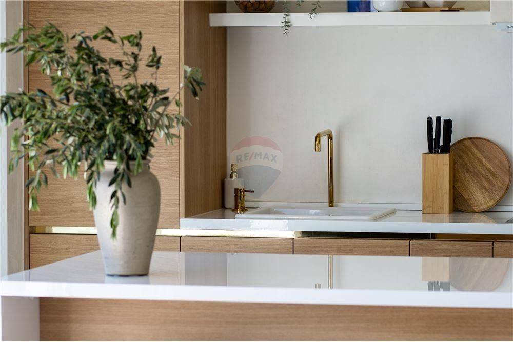 Carefully decorated according to the highest standards, combining Mediterranean style with luxury, it offers two spacious bedrooms, each with its own private bathroom and access to the yard and pool. The living room and kitchen are open concept, and the glass walls along the entire length ensure enough daylight and make the space even bigger, connecting it to the garden.