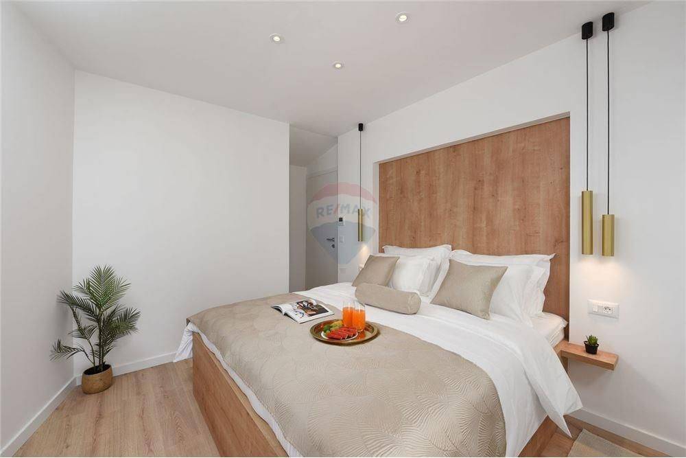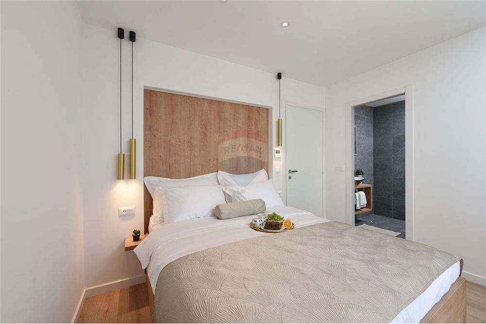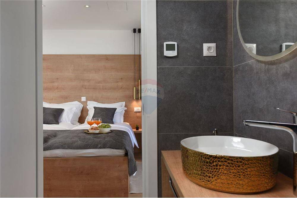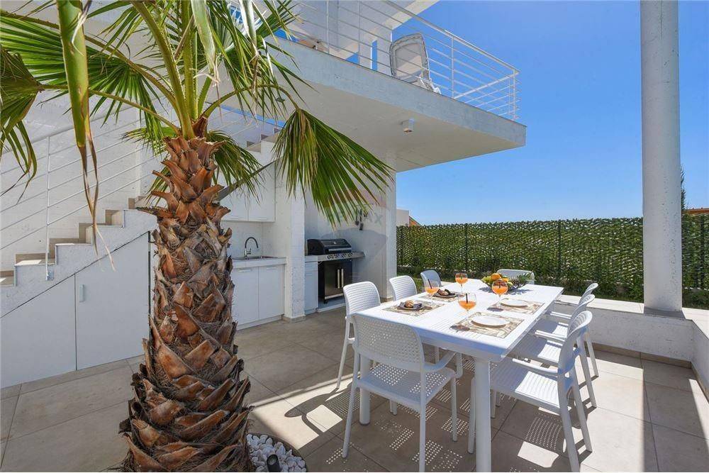 On the ground floor there is a living room, a dining room and a modern kitchen, on the ground floor there is also one bedroom with a bathroom and an additional toilet. There are three bedrooms and three bathrooms on the first floor of the villa. Each bathroom has underfloor heating and electric underfloor heating in the living room. Every room on the first floor leads to the upper terrace of the villa, where there is a jacuzzi and a beautiful view of the sea, and in the evening, a beautiful sunset.