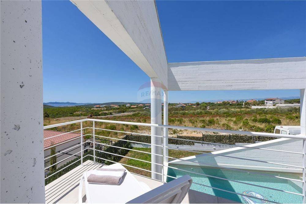A luxurious, beautiful modern villa with a pool and a sea view is for sale in Debeljak near Sukošan.