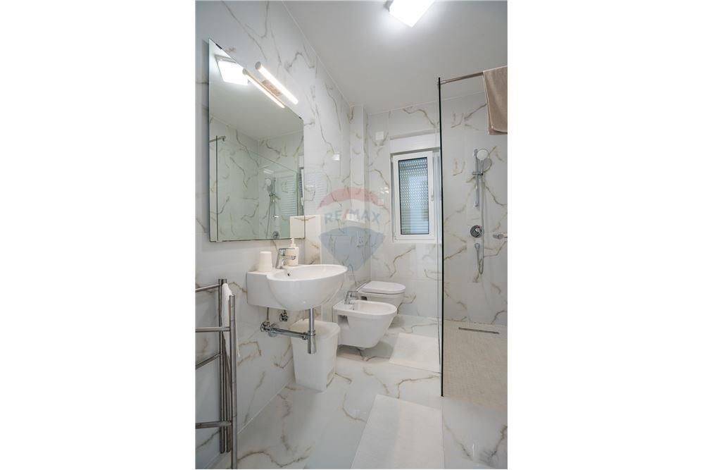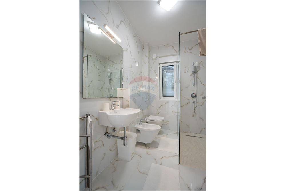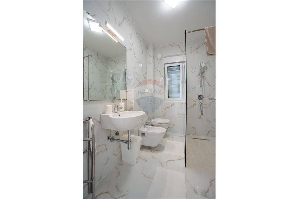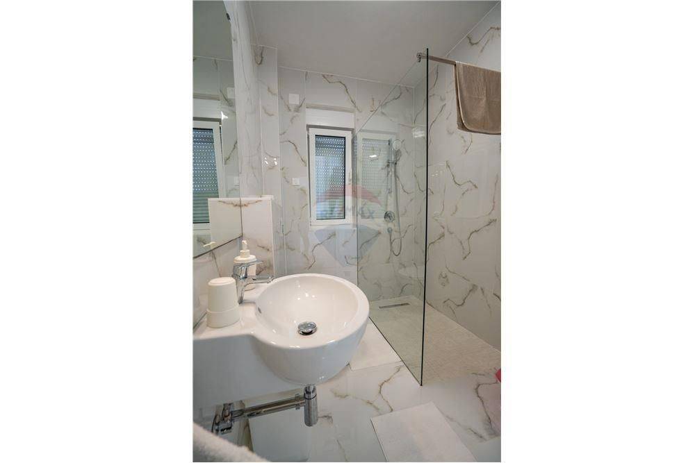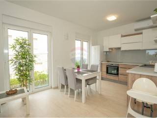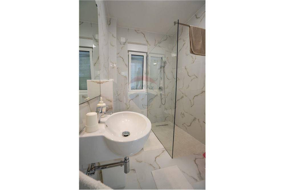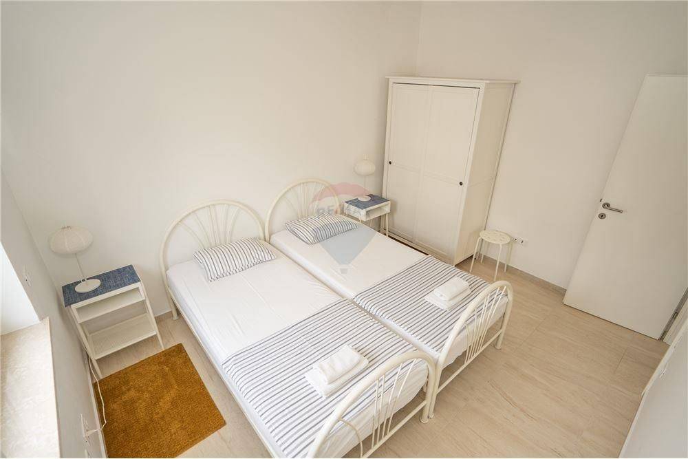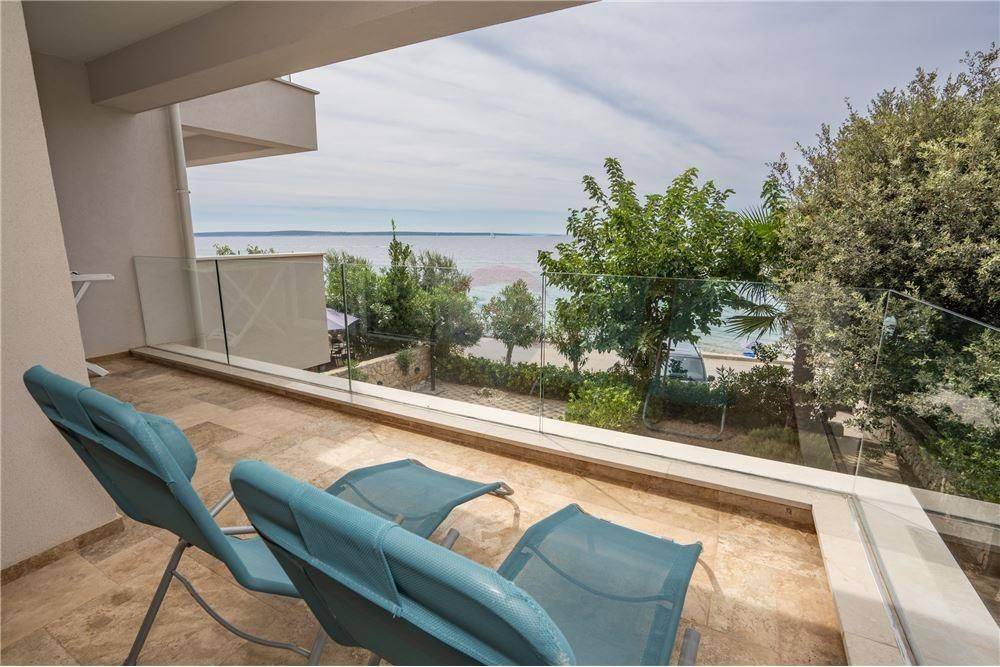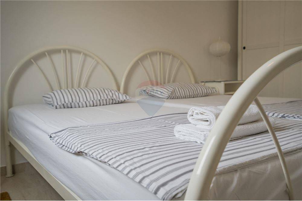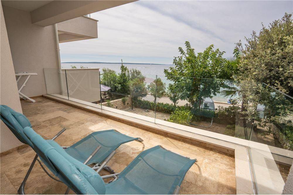 Two-bedroom apartment for sale in Mandre, FIRST ROW TO THE SEA. The 74.79 m2 apartment is located on the FIRST floor of a residential building with a total of 9 units. It consists of an entrance hall, TWO bedrooms, kitchen/dining room/living room, bathroom and a spacious covered terrace. The entrance hall is well designed, the possibility of installing a built-in wardrobe for storing things. The west-facing bedroom has access to a covered terrace. The apartment is for sale fully furnished, exterior PVC joinery with automatic lifts. The apartment is spacious and well lit from the west and north sides. The outdoor terrace covered with high-quality stone, the glass fence provides an unobstructed view of the sea. The possibility of installing a wood or pellet stove, air-conditioned.