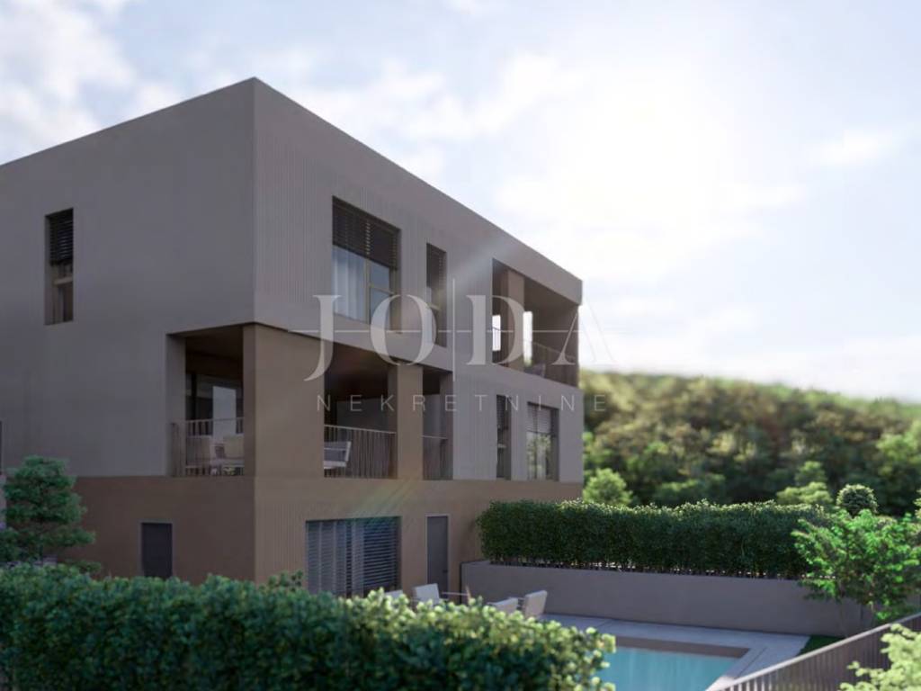 We are selling a luxurious three-storey apartment with a total area of 165 m in a green and quiet part of Kostrena. The apartment is located in a new building with a beautiful sea view and includes a private pool, terraces, a landscaped garden and top-notch technical equipment.