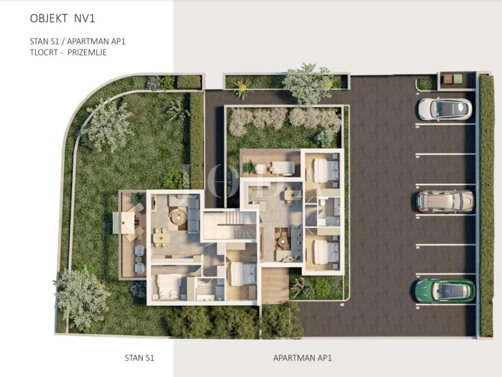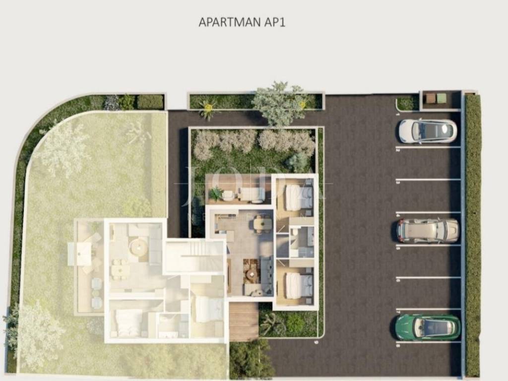 The ground floor apartment has a large garden, while all other apartments have beautiful balconies and a beautiful sea view. The planned completion of the works is summer 2025.