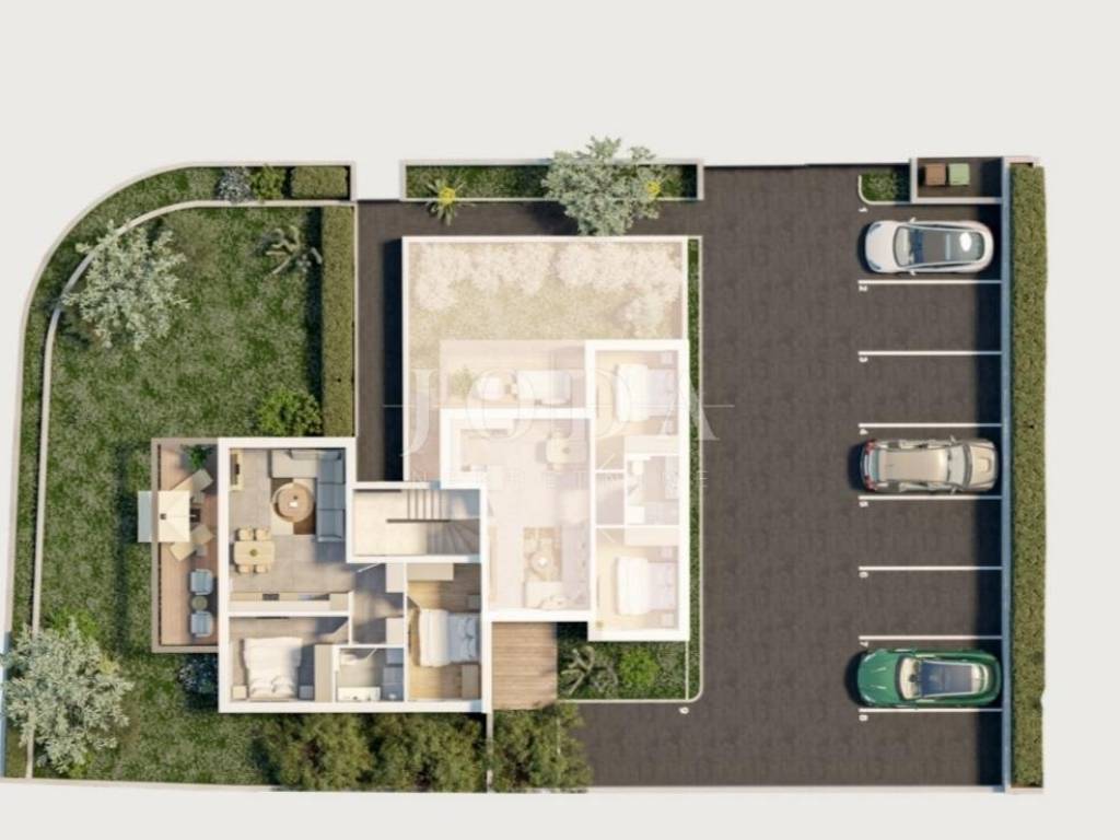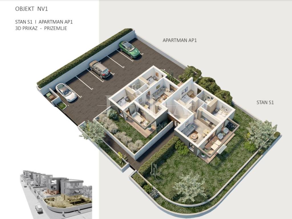 The ground floor apartment has a large garden, while all other apartments have beautiful balconies and a beautiful sea view. The planned completion of the works is summer 2025.