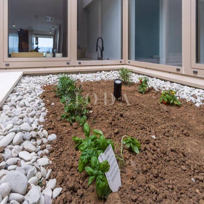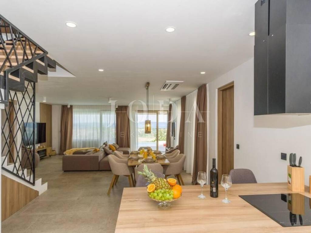 The villa is spread over two floors. The ground floor consists of a kitchen (with access to a small terrace decorated with Mediterranean plants) and a dining room connected to a spacious living room with access to a large terrace where there is a 25m2 heated swimming pool (heat pump) with a panoramic view of the entire Kvarner Bay. In addition, on the ground floor we find a fitness room with a bathroom, an additional room with preparation for a sauna, a toilet and a spacious bedroom with its own bathroom with access to the pool. On the first floor, there are two comfortable rooms with private bathrooms, both of which have access to a spacious terrace with the most beautiful view.