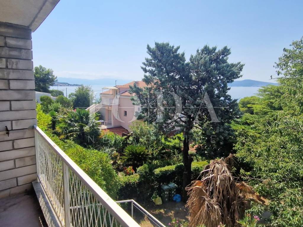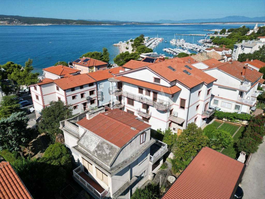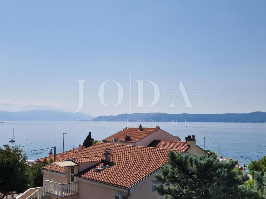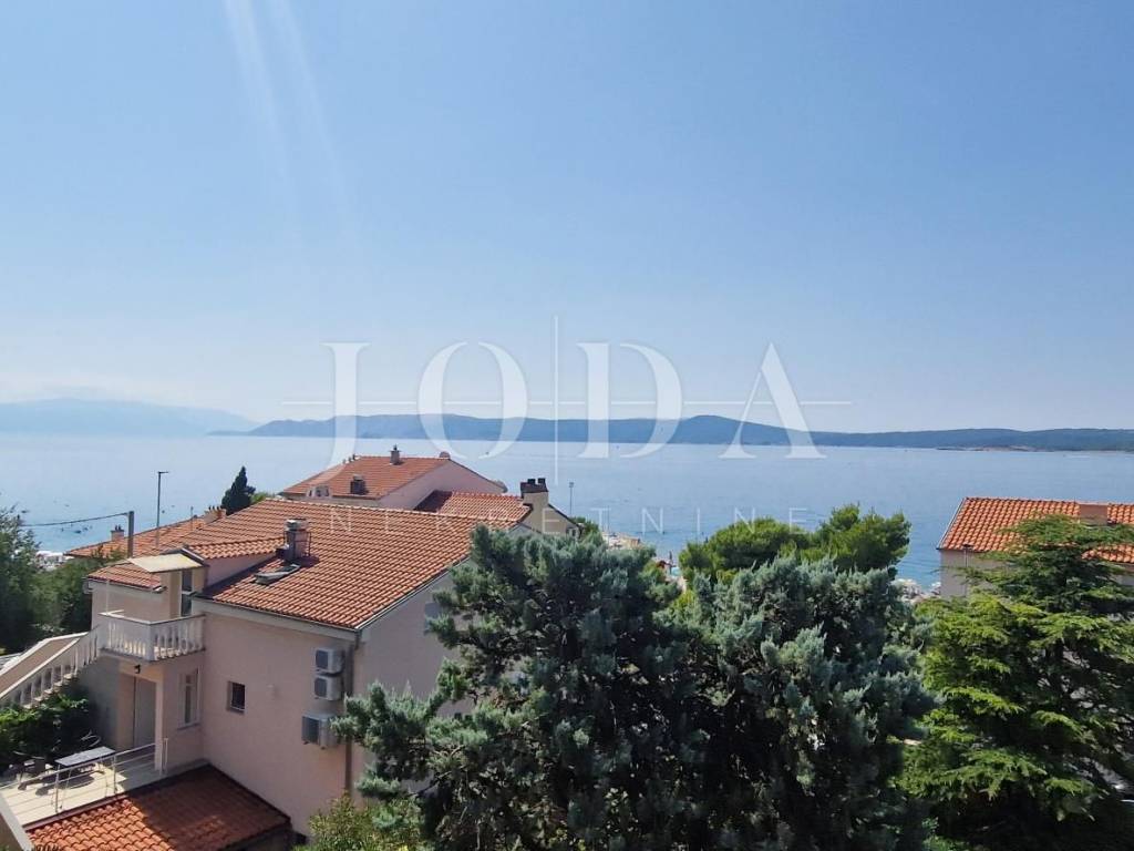 A spacious house with a net area of over 240 m is for sale in an attractive location in Crikvenica, close to the sea and promenade. The house, situated in the second row from the sea, is on a 437 m plot and consists of a basement, ground floor, first and second floors. The basement features a summer kitchen with a terrace. The ground floor, with two entrances, includes a living room with a fireplace, main bathroom, storage room, kitchen, bedroom with an additional bathroom, two hallways, and a terrace. The first floor has three bedrooms, one with a sea-view terrace, another with a small balcony, and the third with a balcony, along with a shared bathroom. The second floor, a raised attic, includes a small bedroom, a large semi-open space that can serve as a bedroom, living room, and a space planned for a kitchen, and a large terrace with a stunning sea view. The plot is fully fenced and provides parking for four cars within the yard.