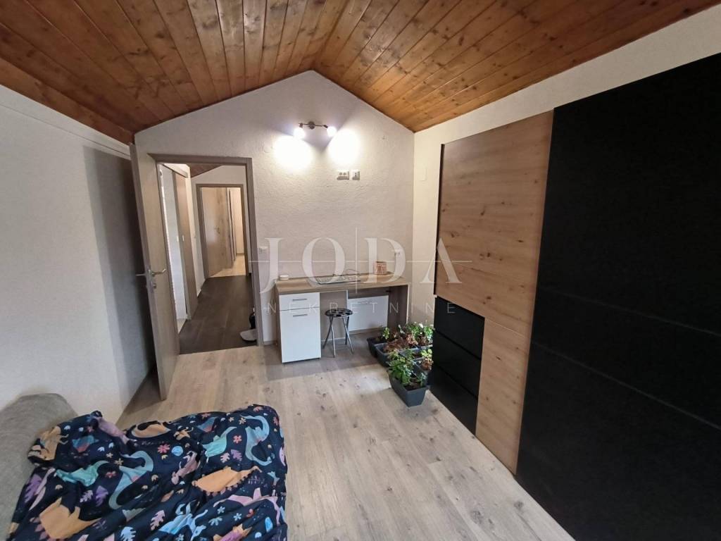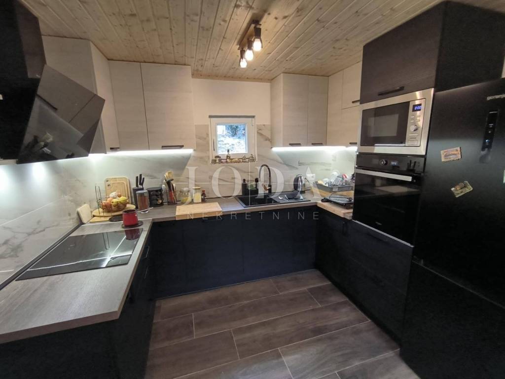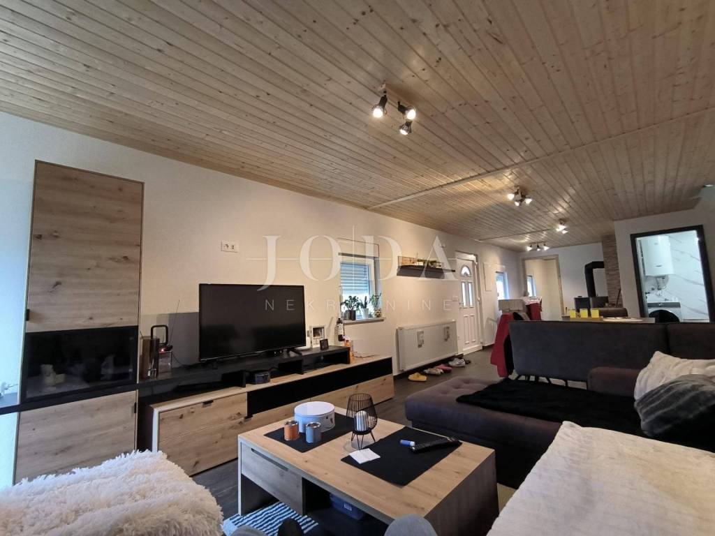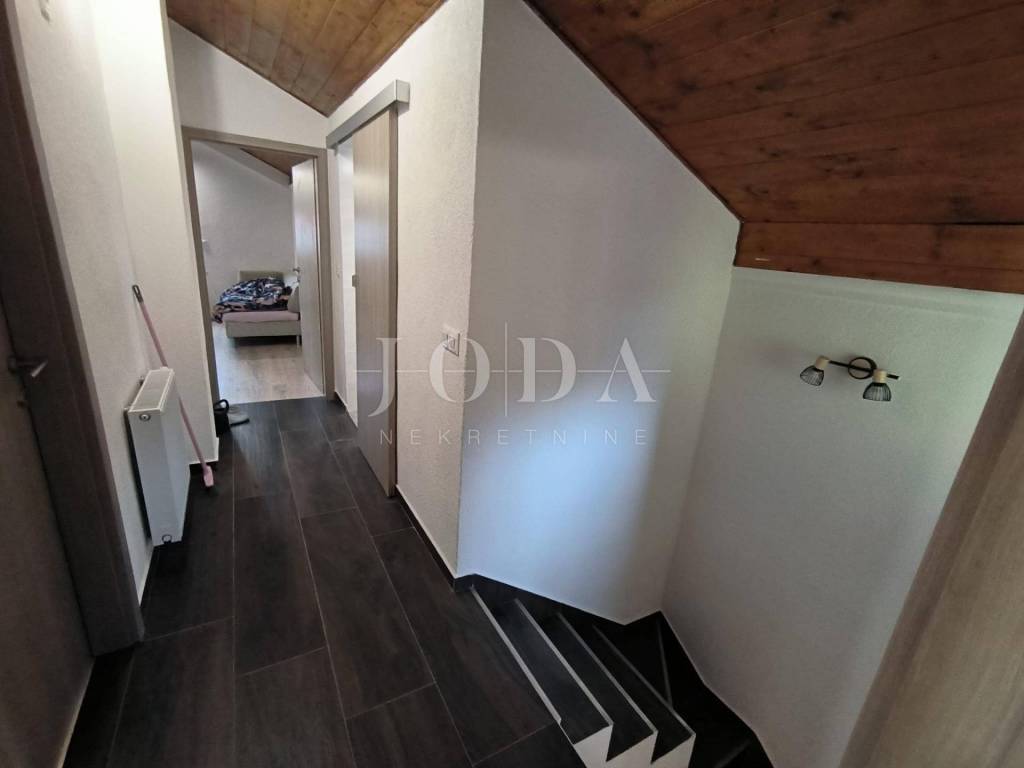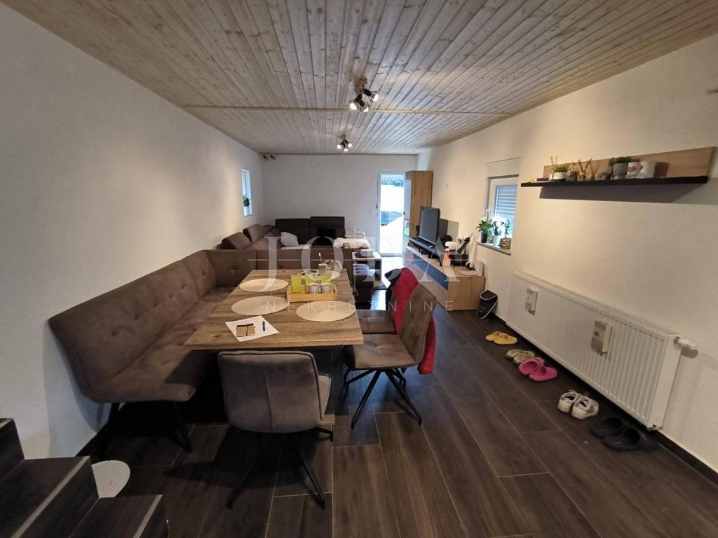 A beautifully decorated two-story house in the hinterland of Crikvenica is for sale. The house was built in 2018, but it was completely decorated this year. It consists of the ground floor where the living room, dining room, kitchen, bathroom and pantry are located. On the upper floor we have 3 rooms and a bathroom. The main room has an exit to the loggia and the second room has an exit to the balcony. Total area 136 m2, with a garden of 380 m2. In the yard, timber has been prepared for a canopy and a gazebo with a barbecue.