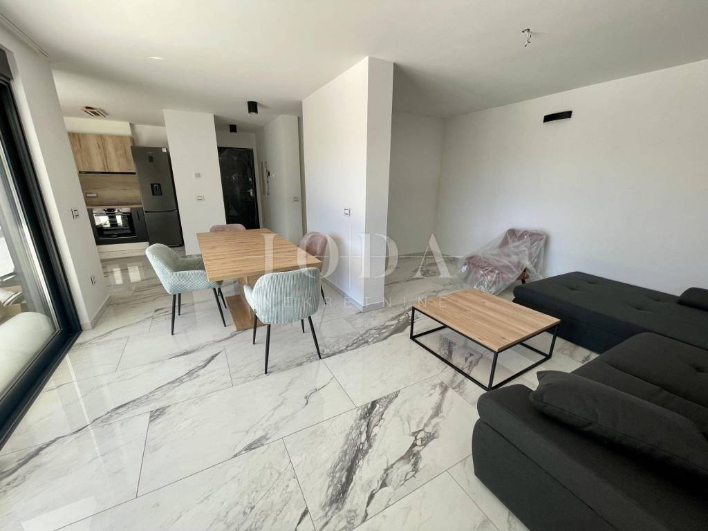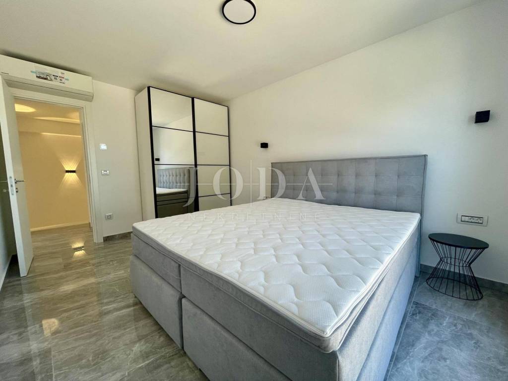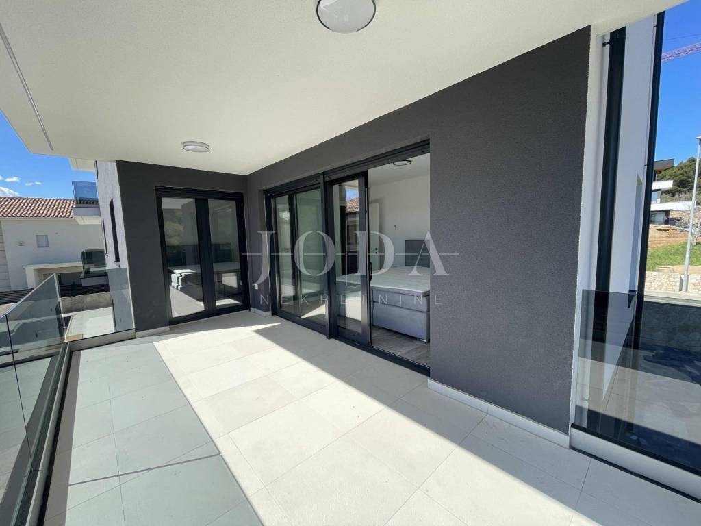 The building is built with quality materials, the apartment is equipped with air conditioning, underfloor heating in all rooms, ALU windows and quality ceramic coverings. The apartment has two parking spaces and a garden area of approx. 70 m2 with a swimming pool and a sunbathing area. The property is located in an excellent location approx. 450 meters from the sea and the beach.