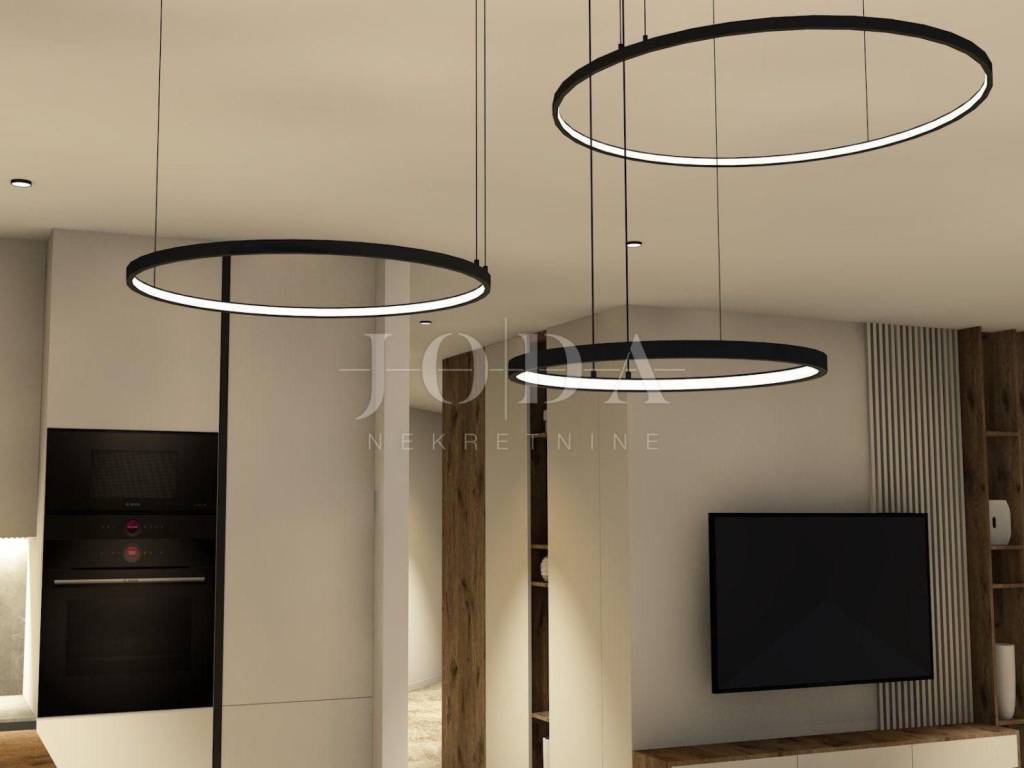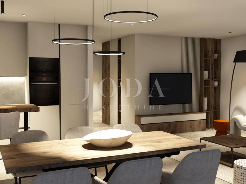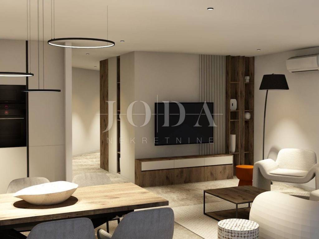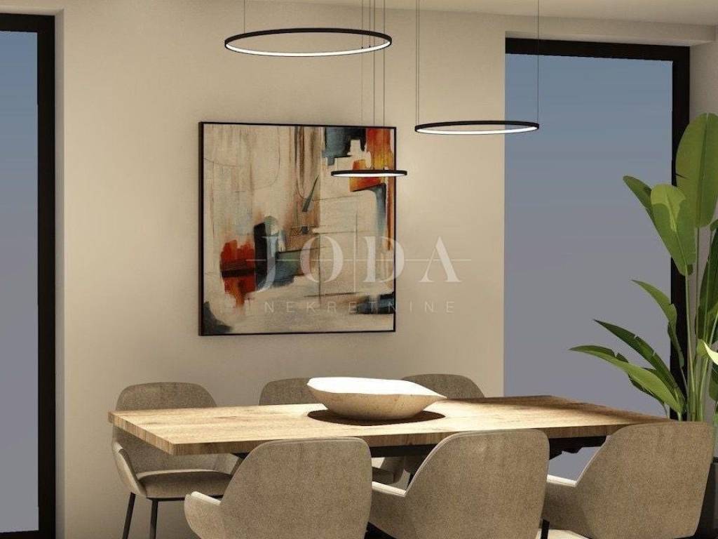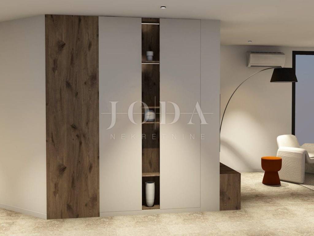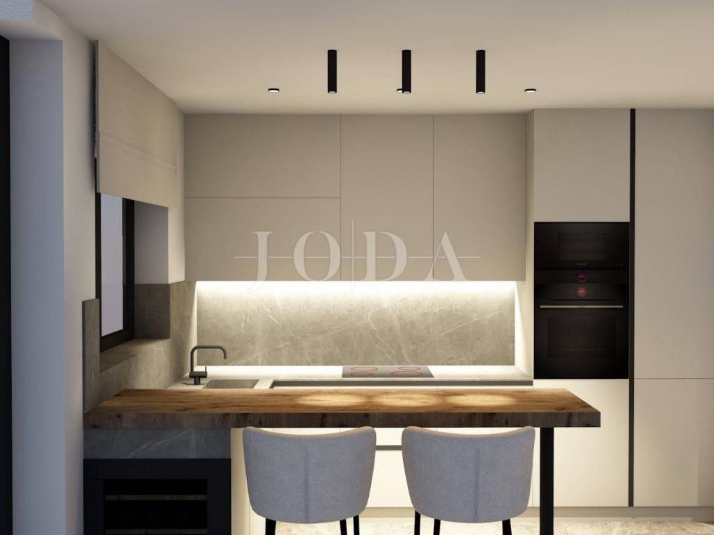 The villa has a total of three residential units. The apartment has a living area of 134m2 and consists of an entrance area, a laundry room, a spacious living room with an exit to the terrace with a beautiful view of the sea, a kitchen and dining room, three bedrooms and two bathrooms. The future owner can choose construction materials such as ceramics, parquet and sanitary ware. The property will have all rooms air-conditioned, underfloor heating and quality ALU carpentry. The apartment has two parking spaces and approx. 75m2 garden. It is located in a great location, only 500 meters from the sea!