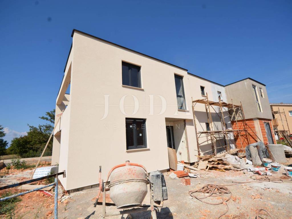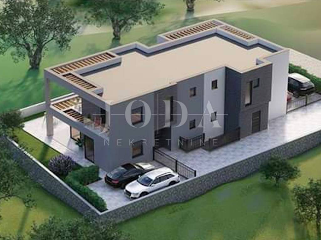 Semi-detached house with swimming pool under construction in a quiet location near Malinska. The 120 sqm house consists of ground floor and first floor. The ground floor has a living room, kitchen with dining area, bedroom and bathroom. The kitchen and living room open onto a terrace and solarium and offer views of nature. On the first floor there are 2 bedrooms, one of which has its own bathroom and an additional toilet. On a plot of approx. 200 sqm there is a solarium with swimming pool, barbecue and 3 parking spaces. The center of Malinska and the beautiful beaches are only 2 km away. The house is equipped with quality equipment and at this stage of construction a potential buyer can choose the materials and equipment he prefers.