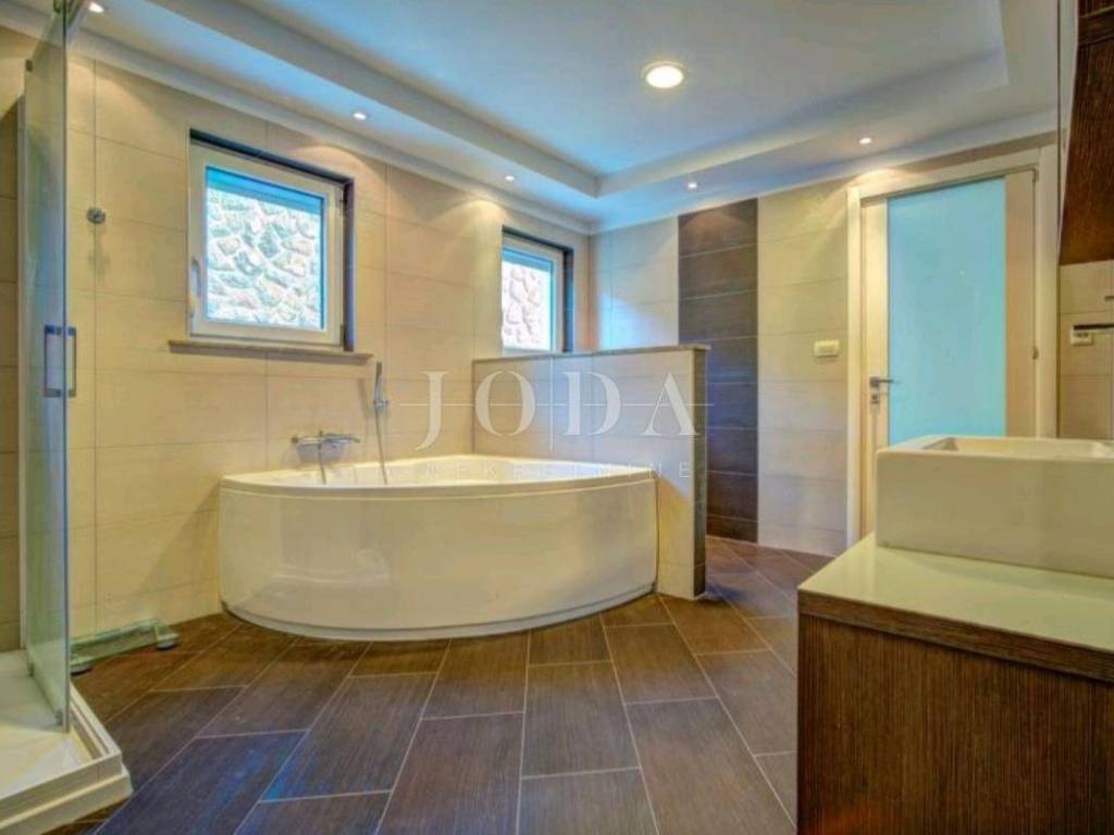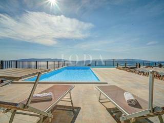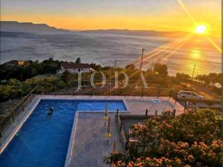 We are selling a house with five residential units, a tavern, a swimming pool of 64 m2 and a building plot of 360 m2. The house consists of a ground floor, two floors and an attic. The ground floor has a garage, two bedroom apartment with two bathrooms, kitchen, dining room and open plan living room. The ground floor apartment has underfloor heating. On the first and second floor there are four two-bedroom apartments with beautiful sea views. One apartment has central pellet heating. The whole house is air conditioned. The attic can be converted into living space. Property in a well-established tourist rental. Location beautiful ideal for relaxation and enjoyment.