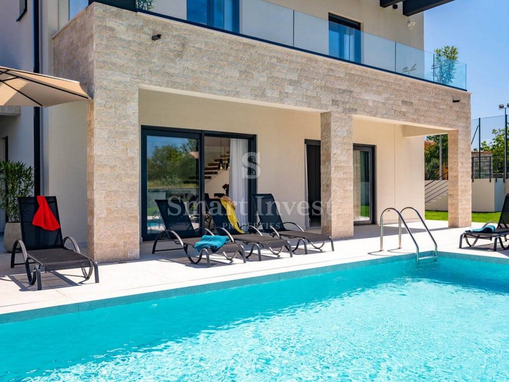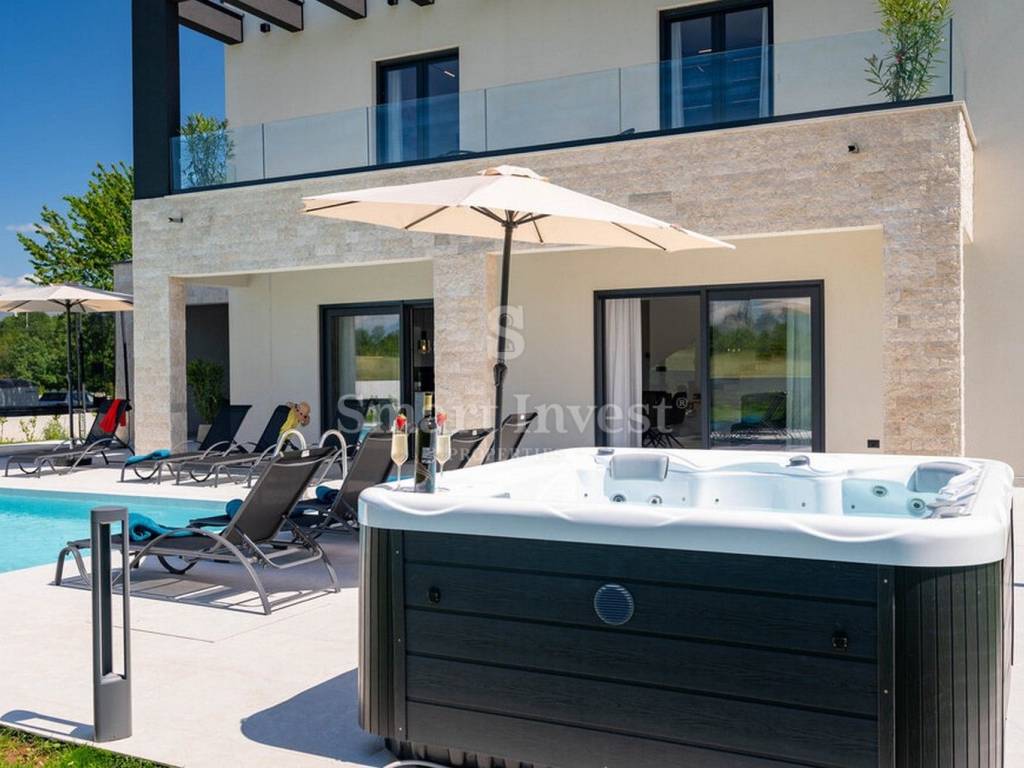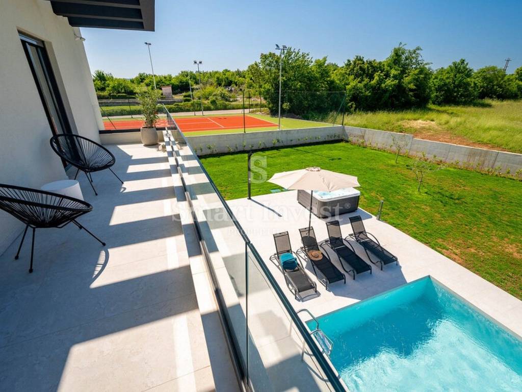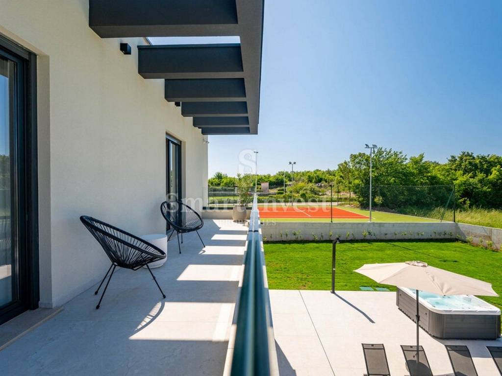 In a quiet place near Labin, a new modern 5* villa is for sale, with a swimming pool and a tennis court, excellent for investment!