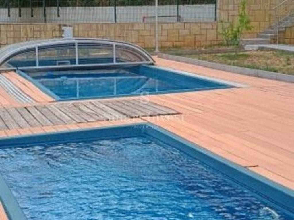 The landscaped and well-kept yard is under video surveillance, which provides additional security, and there are two swimming pools, a large and a smaller children's pool, and landscaped green areas at the disposal of the tenants.