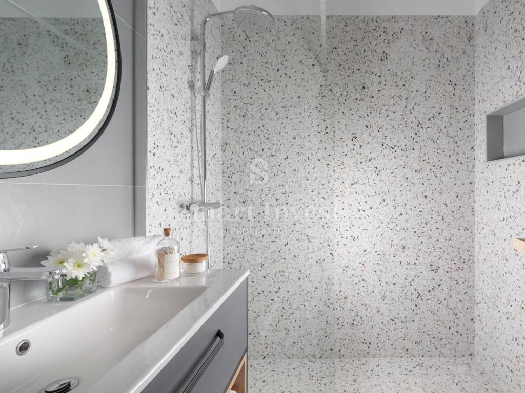 Special attention has been paid to the organization and interior design to make the stay as pleasant as possible. The ground floor is designed as an open, fluid space that connects the kitchen, dining room and living room with direct access to the terrace and garden - conceived as a central place for daily activities. Large glass surfaces allow for plenty of natural light, while the contemporary style of decoration and the use of natural colors create an atmosphere that radiates optimism and comfort.