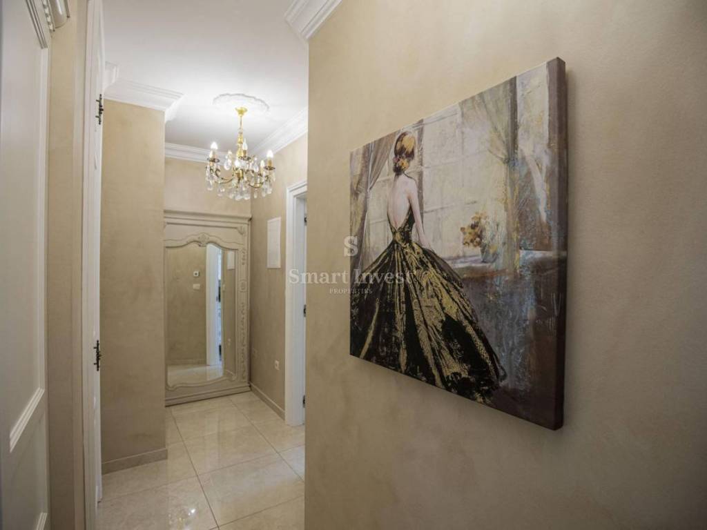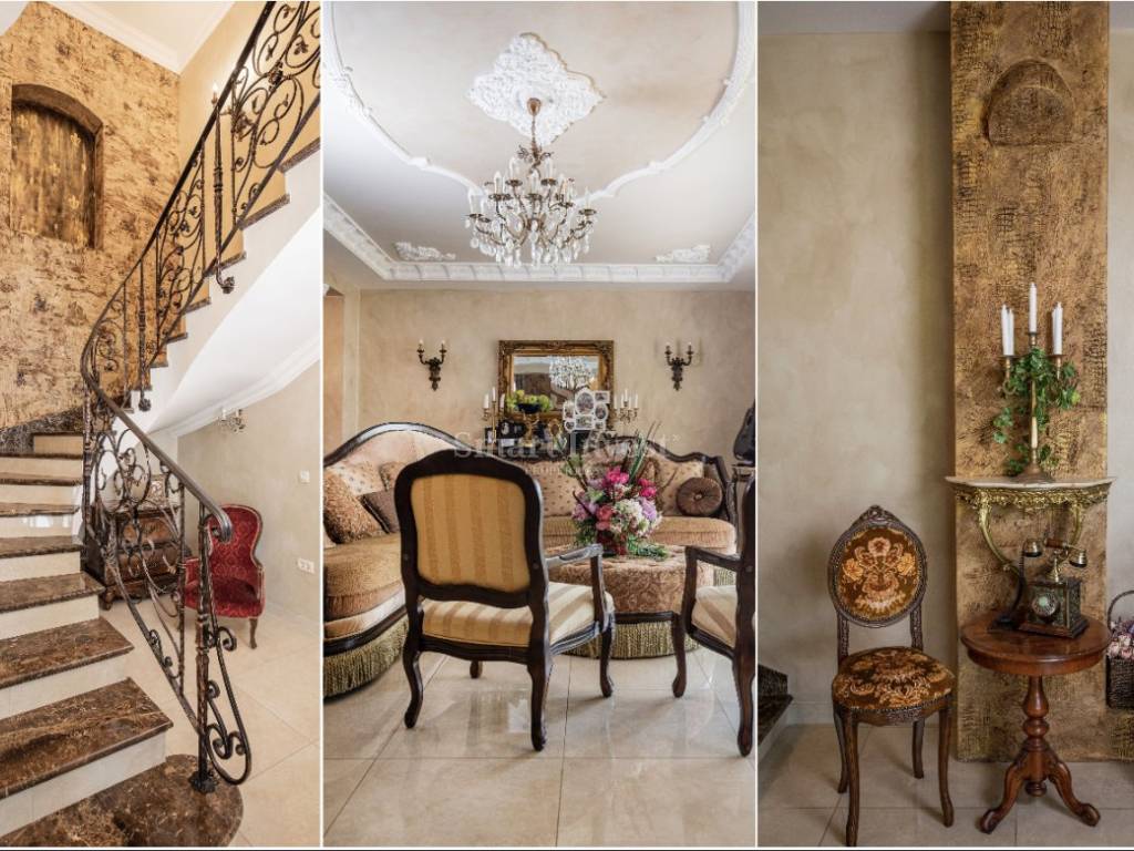 The ceilings are decorated with plaster stucco, the chandeliers with plaster medallions, and the kitchen elements with plaster ornaments.
