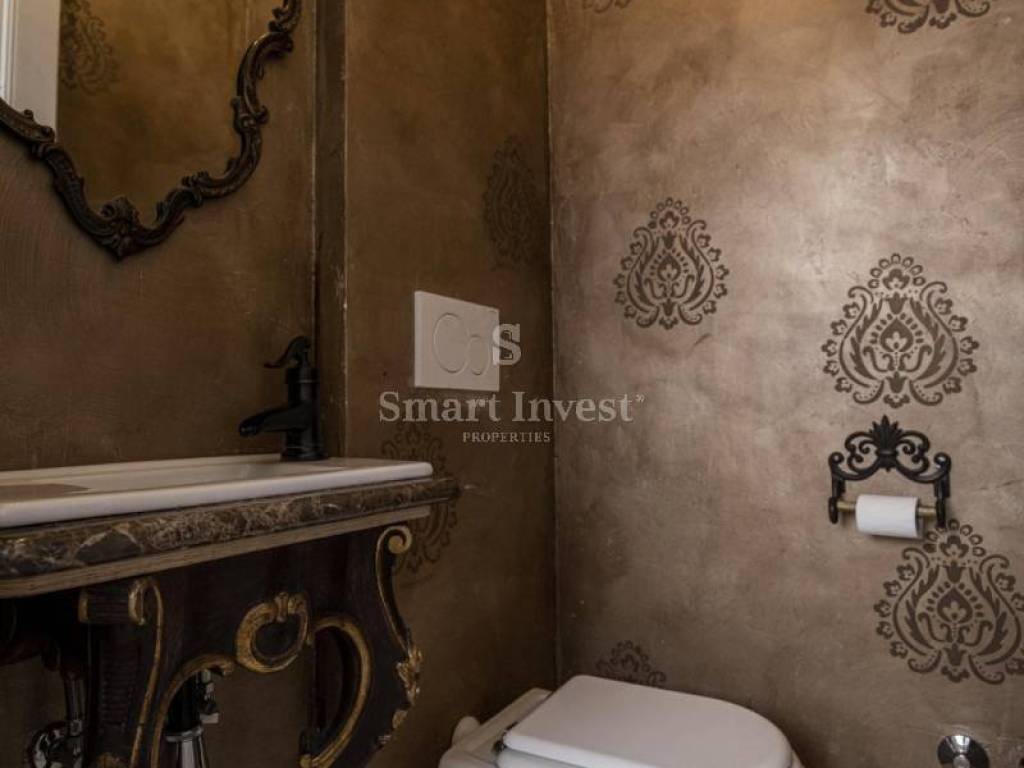 The special feature of the decoration of the large apartment is in the details, and above all in the decorative walls where various techniques have been applied: crocodile skin, wood graining, natural crackle finish, color washing, marbleizing, stenciling and Tuscan style.