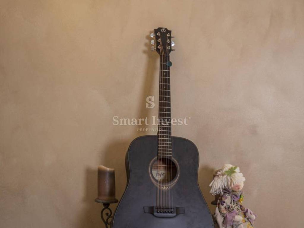 The large apartment extends over two floors with a large living room, kitchen with dining room and toilet, while upstairs there are four rooms, each of which has its own story.