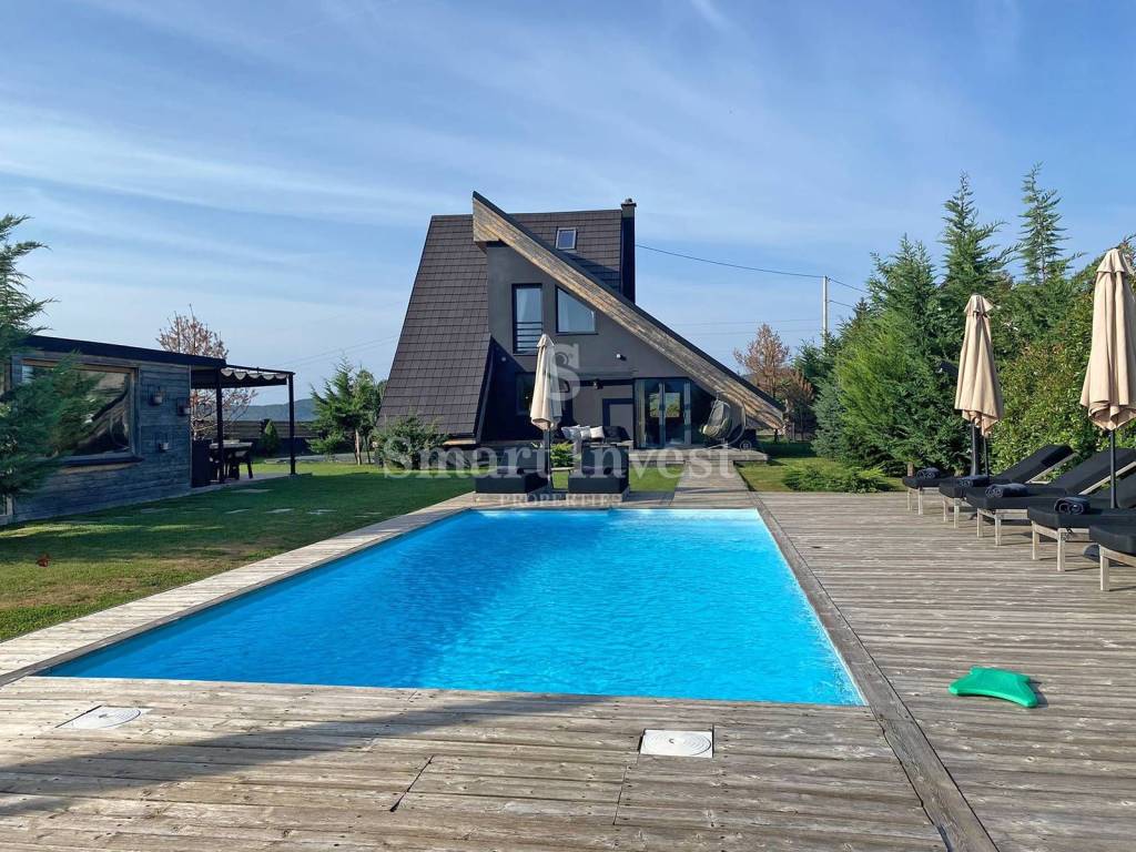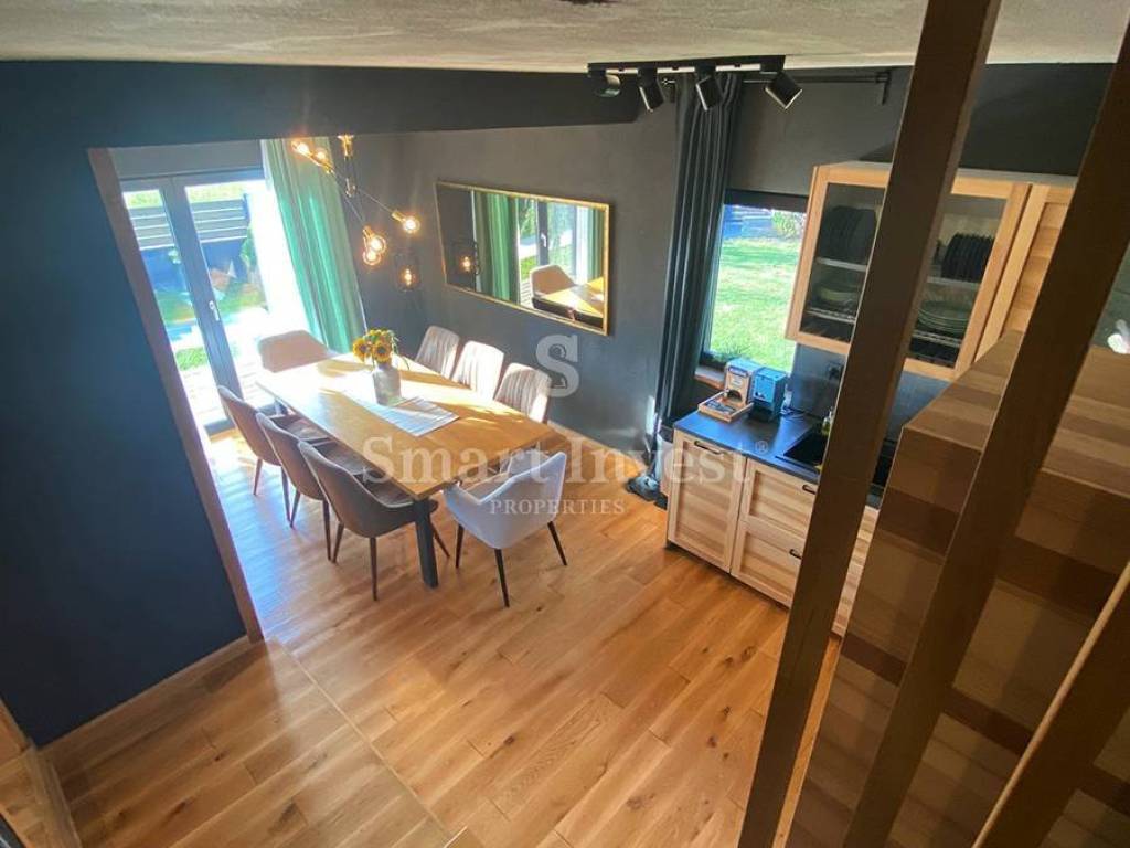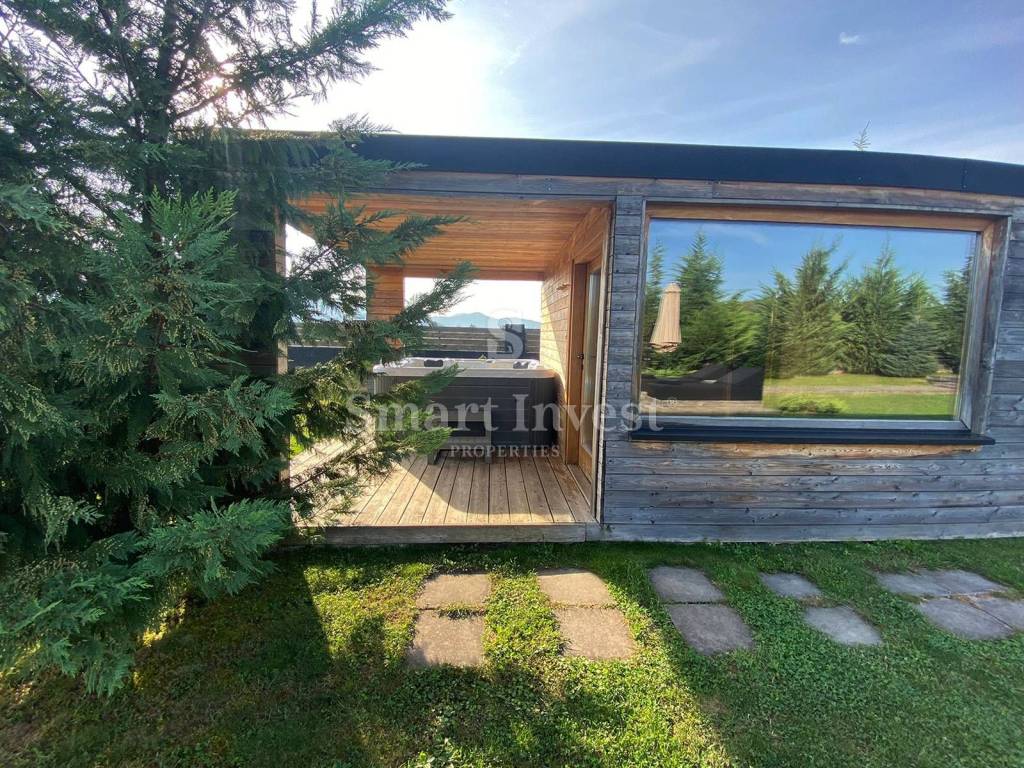 This beautiful new SPA villa is categorized with 4* and after skiing, hiking, cycling, kayaking or visiting natural sights, guests can relax in the jacuzzi, sauna, outdoor pool and lounge area in the garden with a barbecue. There are also parking spaces on the 1300 m2 garden.