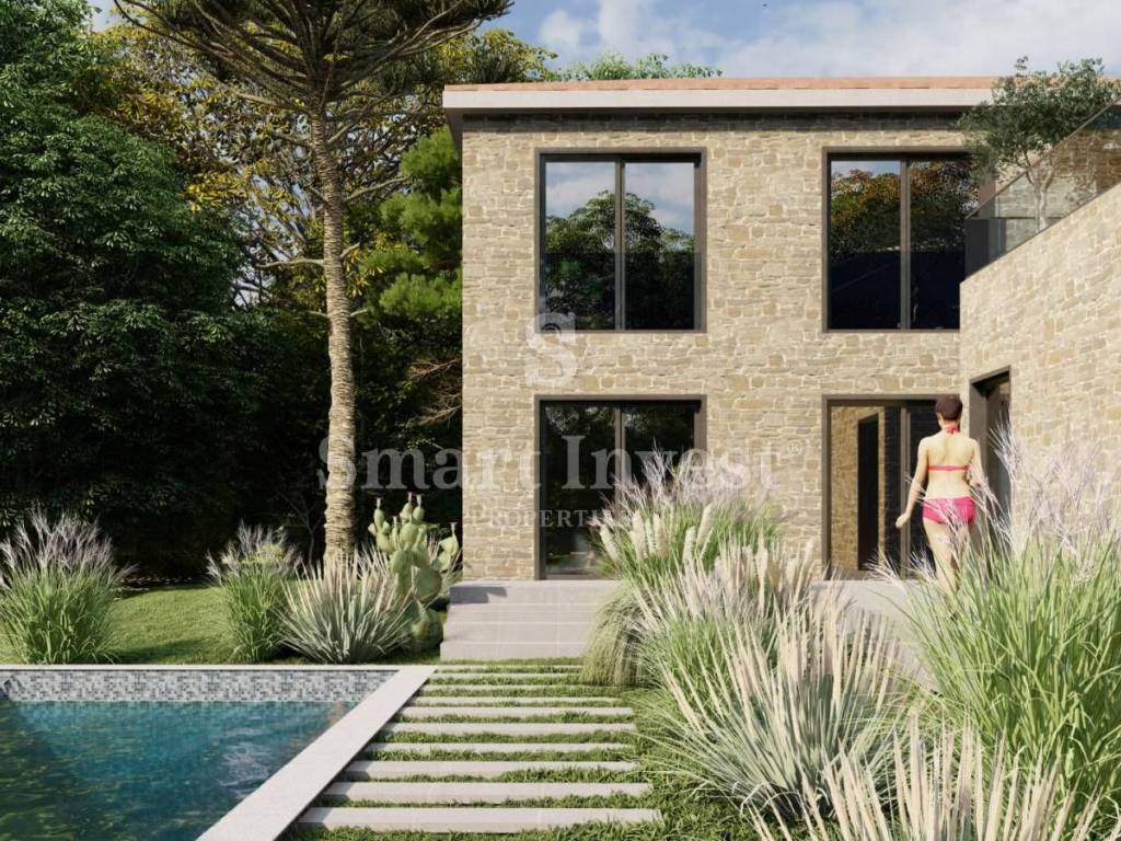 Građevinsko zemljište s građevinskom dozvolom za gradnju kuće s bazenom nedaleko centra Brtonigle, mjesta na sjeverozapadnoj obali Istre traženog radi predivne lokacije, izvrsne gastronomije i vina, kao i mogućnosti za rekreaciju. S prvog kata buduće kuće vidi se more, a pogled se pruža na zelene brežuljke Brtonigle. U okolici se nalaze elitne ville za odmor, cijela regija je vrlo mirna i izuzetno tražena među turistima željnima privatnosti i iskustvenog lifestylea.