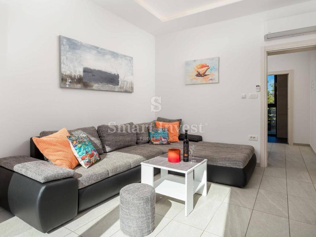 The central residnetial unit is a luxurious duplex apartment located both on the ground floor and on the first floor. On the lower level there is a spacious living room with kitchen and dining area with an exit to a beautiful southern terrace where is situated an overflow pool with a sunbathing area and a view of the sea. On the upper floor there are 4 bedrooms, 2 bathrooms and a laundry and drying room.