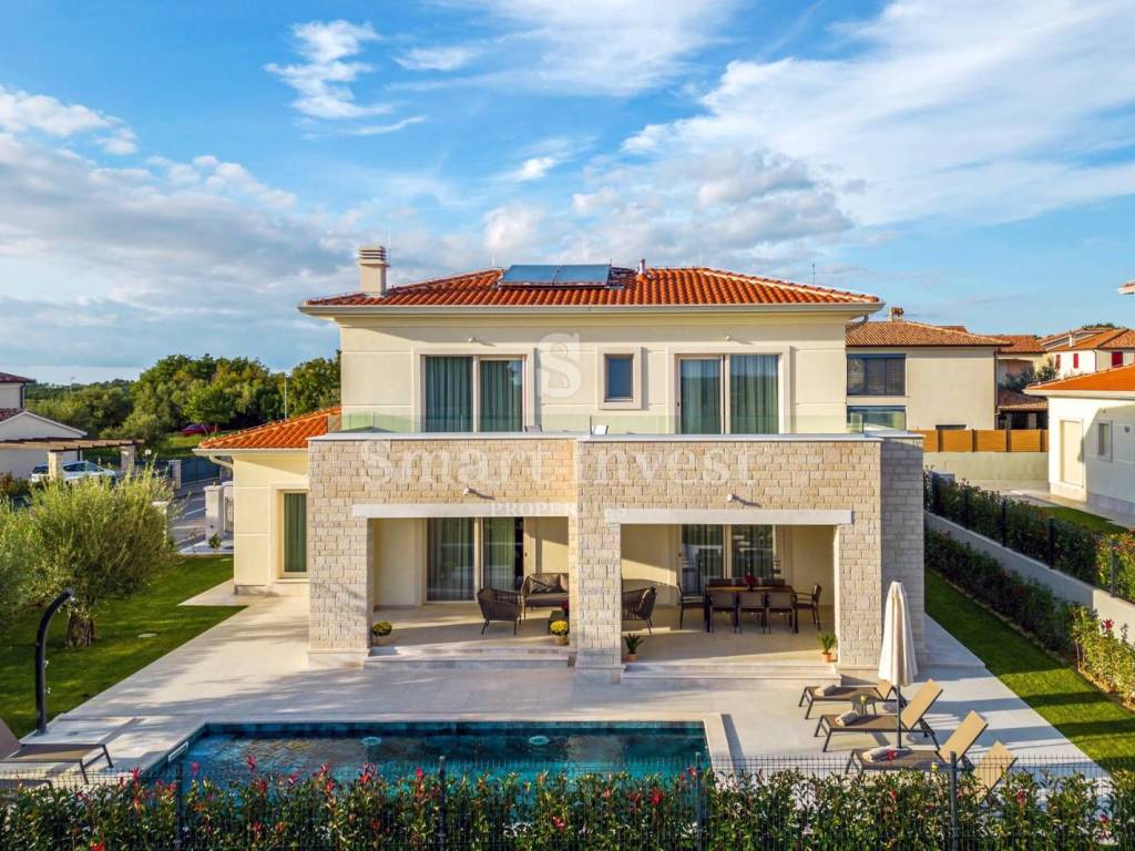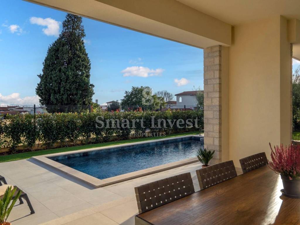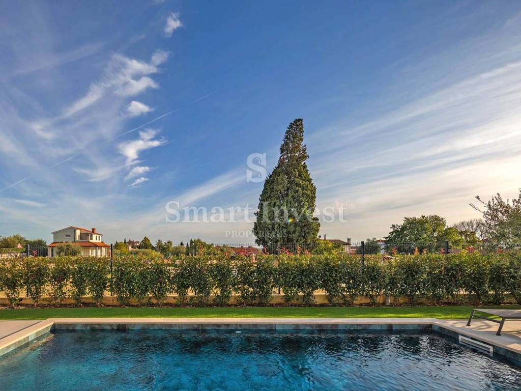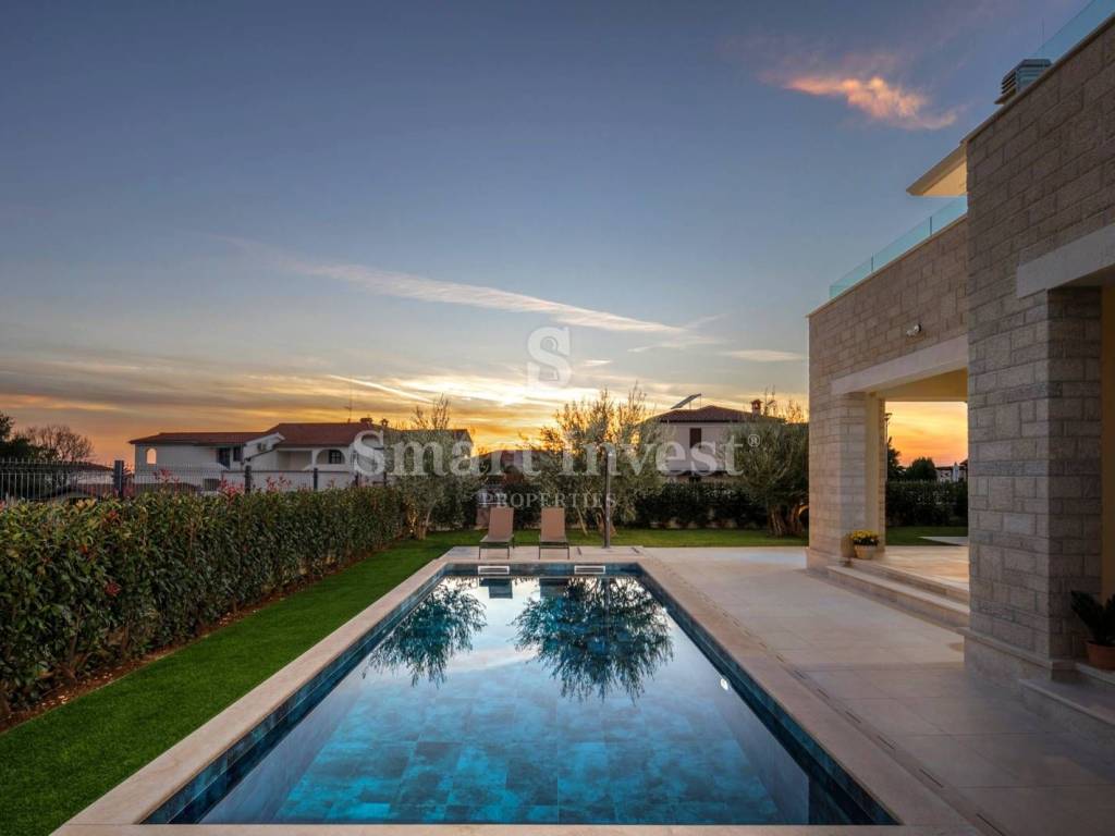 For sale is a beautiful modern villa of top quality and equipment, with a view of the sea, a heated swimming pool and a beautifully landscaped garden. Great location in a nice quiet village, only 1.5 km from the sea and 7 km from Poreč.