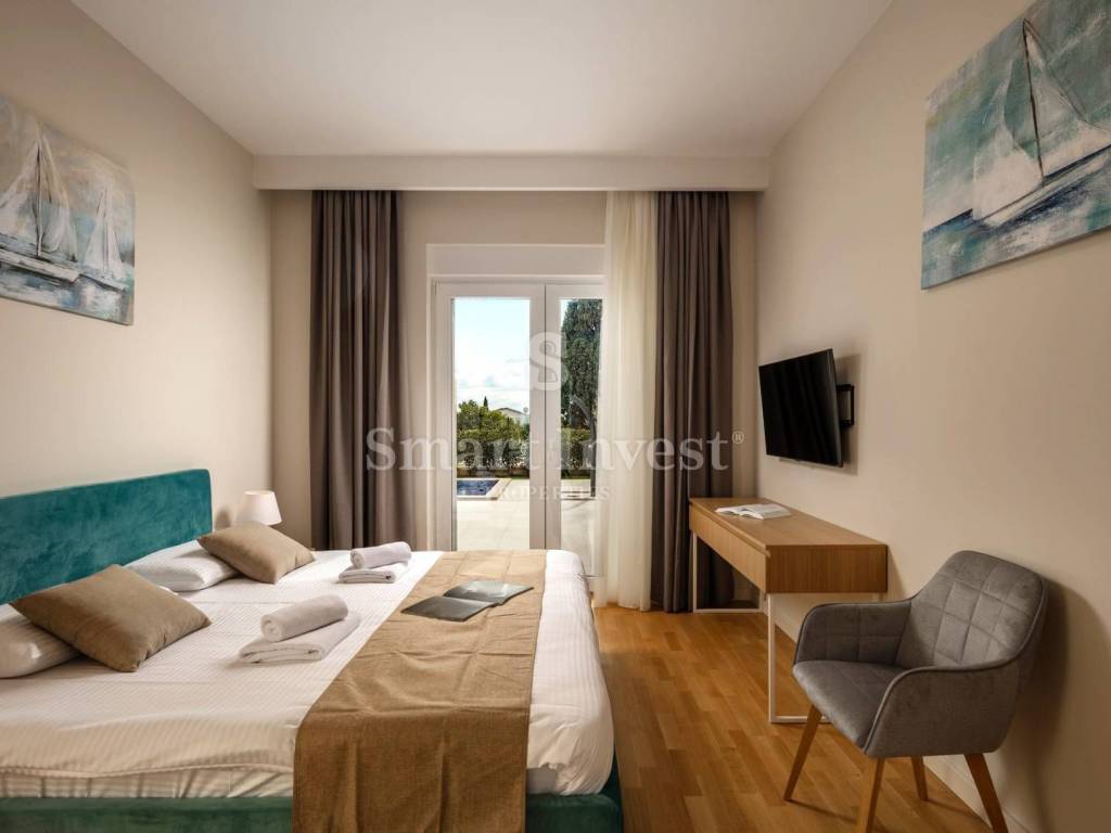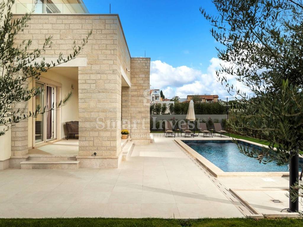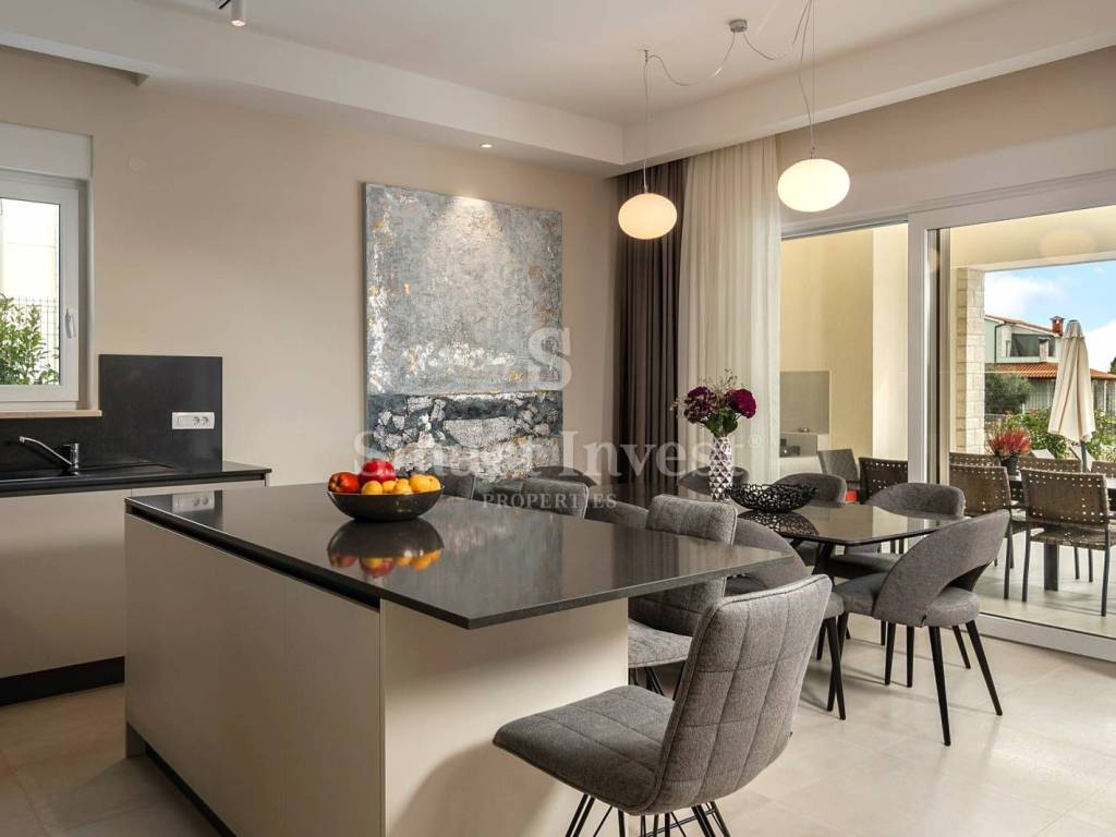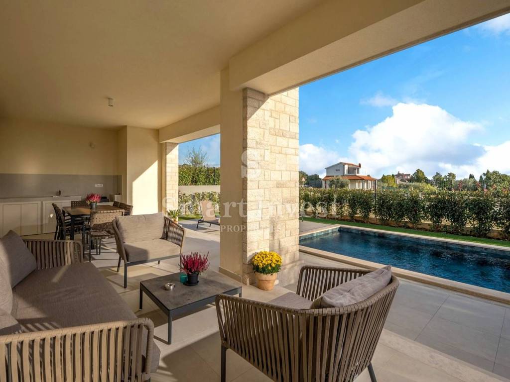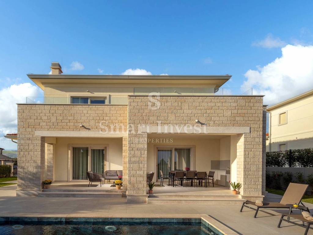 For sale is a beautiful modern villa of top quality and equipment, with a view of the sea, a heated swimming pool and a beautifully landscaped garden. Great location in a nice quiet village, only 1.5 km from the sea and 7 km from Poreč.