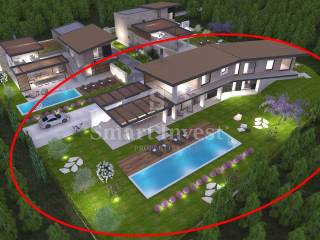 The complex of 3 luxury villas with swimming pools is situated on an excellent location in a quiet area of Vodnjan, with a unique view of the sea and the Brijuni National Park that extends from the plot. The plot is the last building plot, after which there are only olive groves.