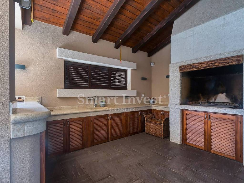 The territory of the villa is completely fenced with remote control gate. There is a swimming pool of 60 m2, spacious garden planted with Mediterranean plants, barbecue and a place for socializing, water well and 6 parking spaces.