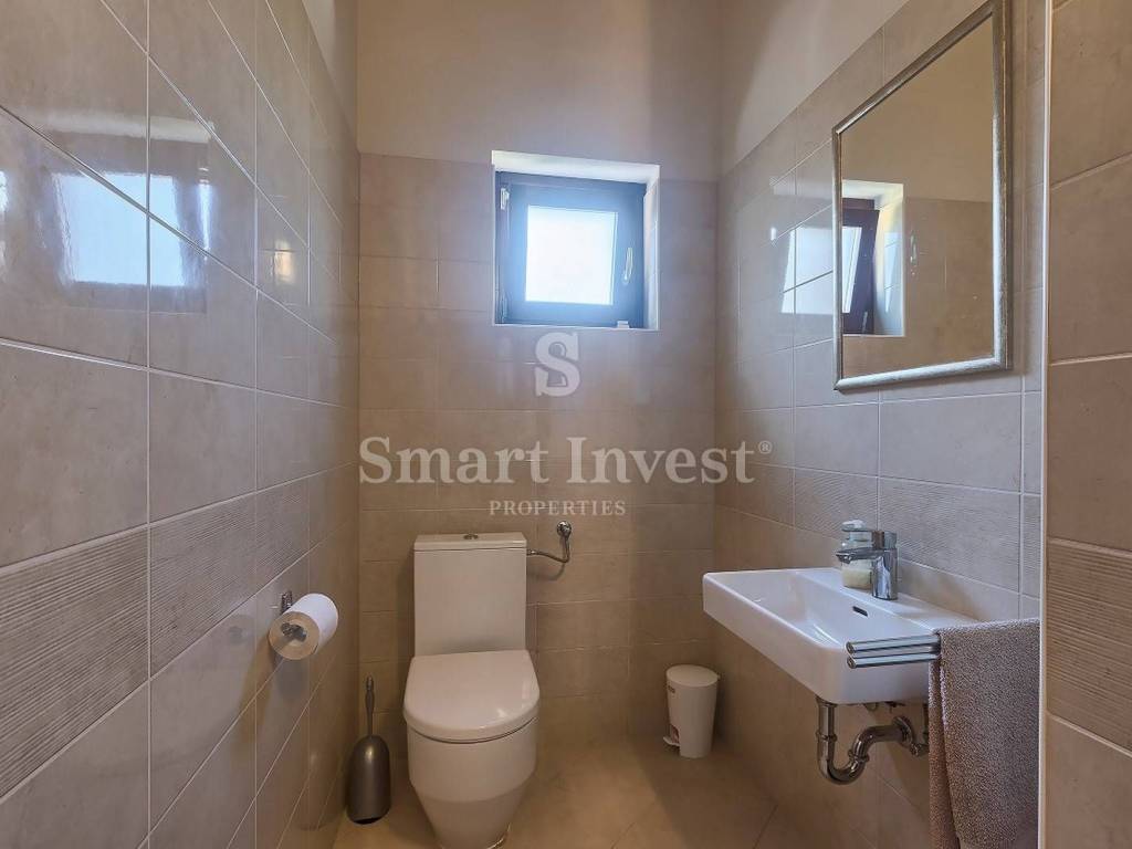It consists of a spacious living room with kitchen and dining area, 3 bedrooms with balconies, 3 bathrooms, toilet, tavern (konoba), storage room, laundry room, roof terrace, swimming pool 10 x 6 meters. It also has a basement of 100 m2 where is planned to be a wine cellar.