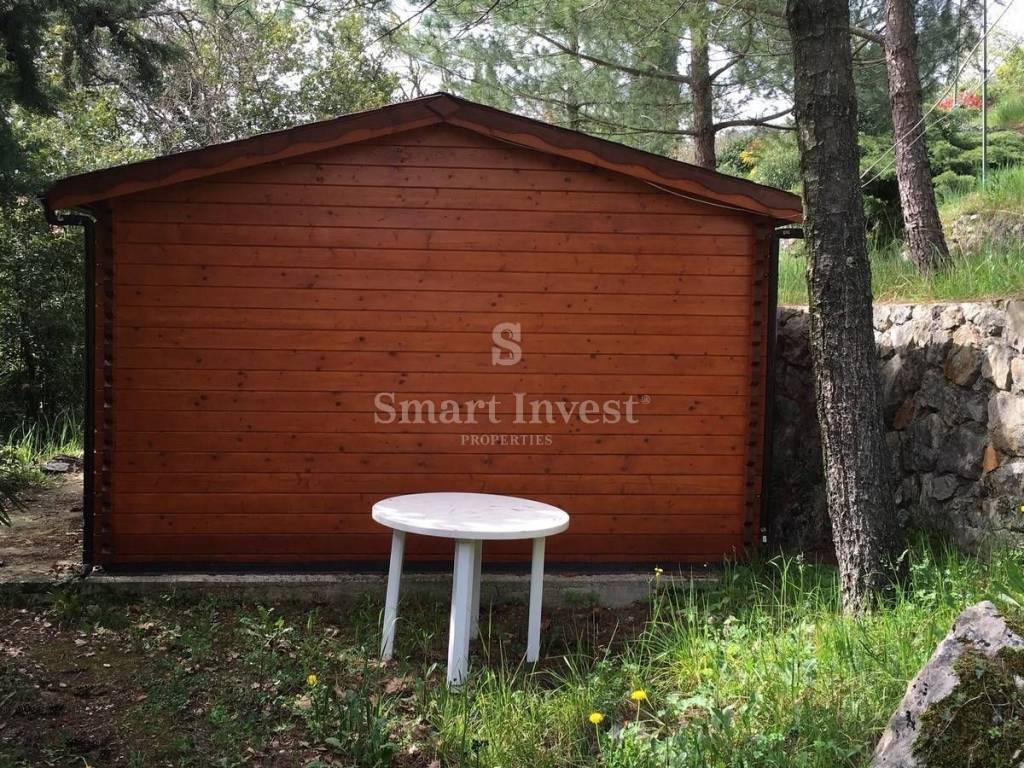 Zemljište ima asfaltni prilaz i kapiju na ulazu, a na zemljištu se nalazi drvena kućica.