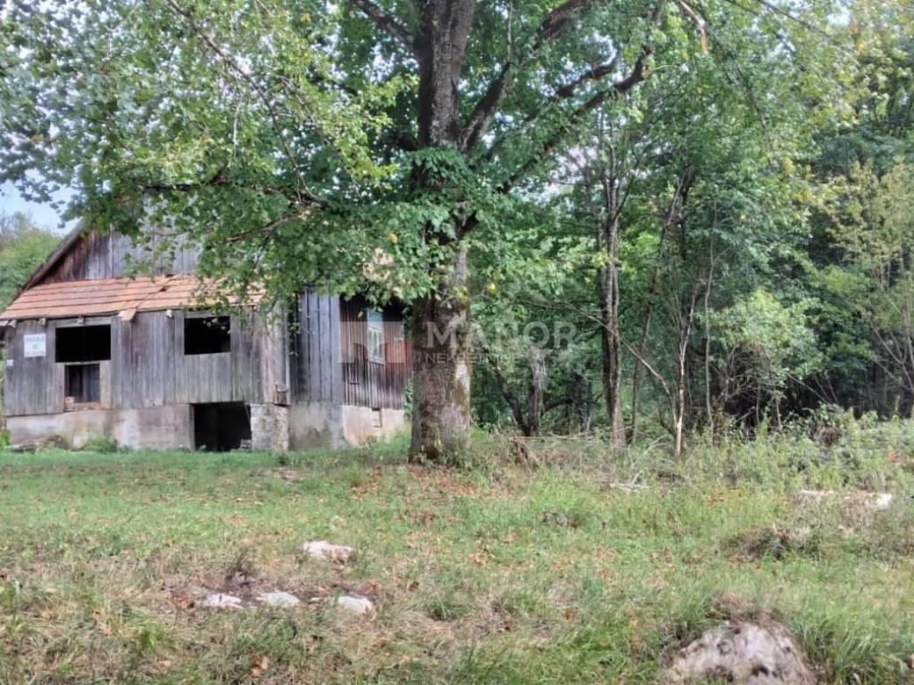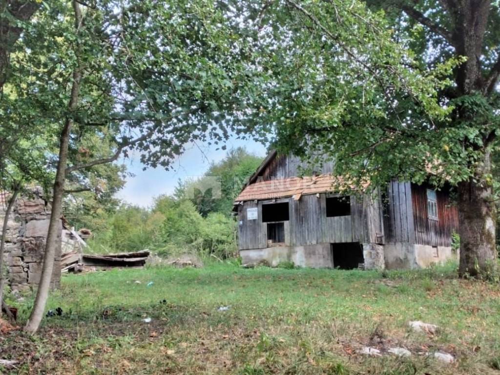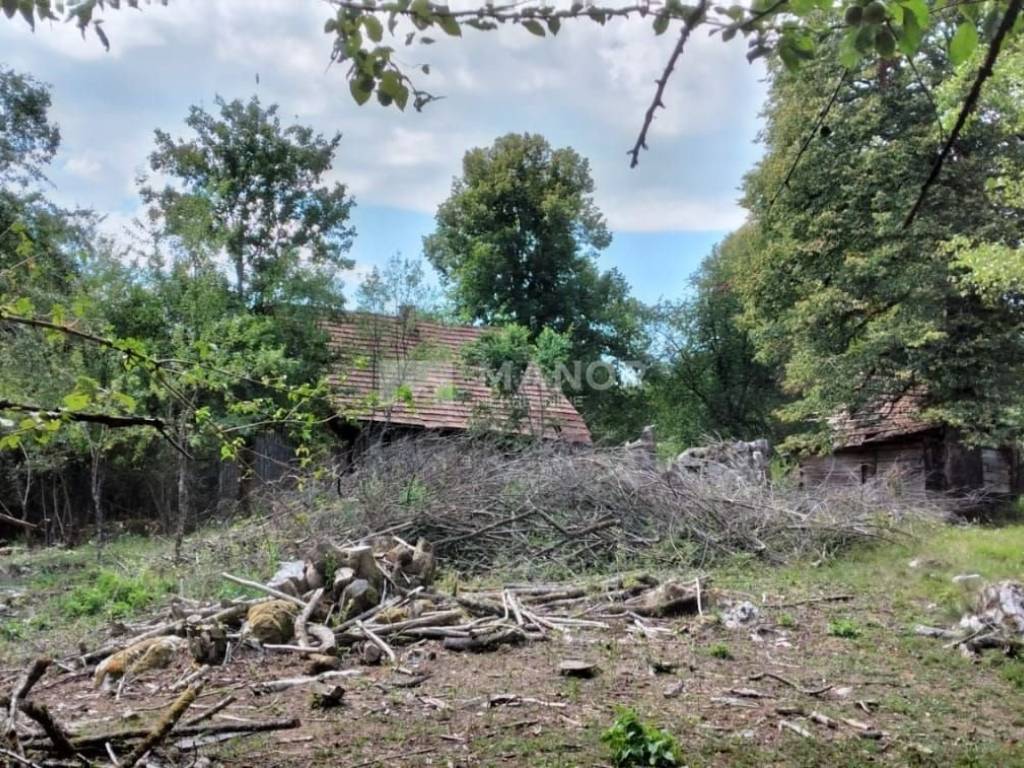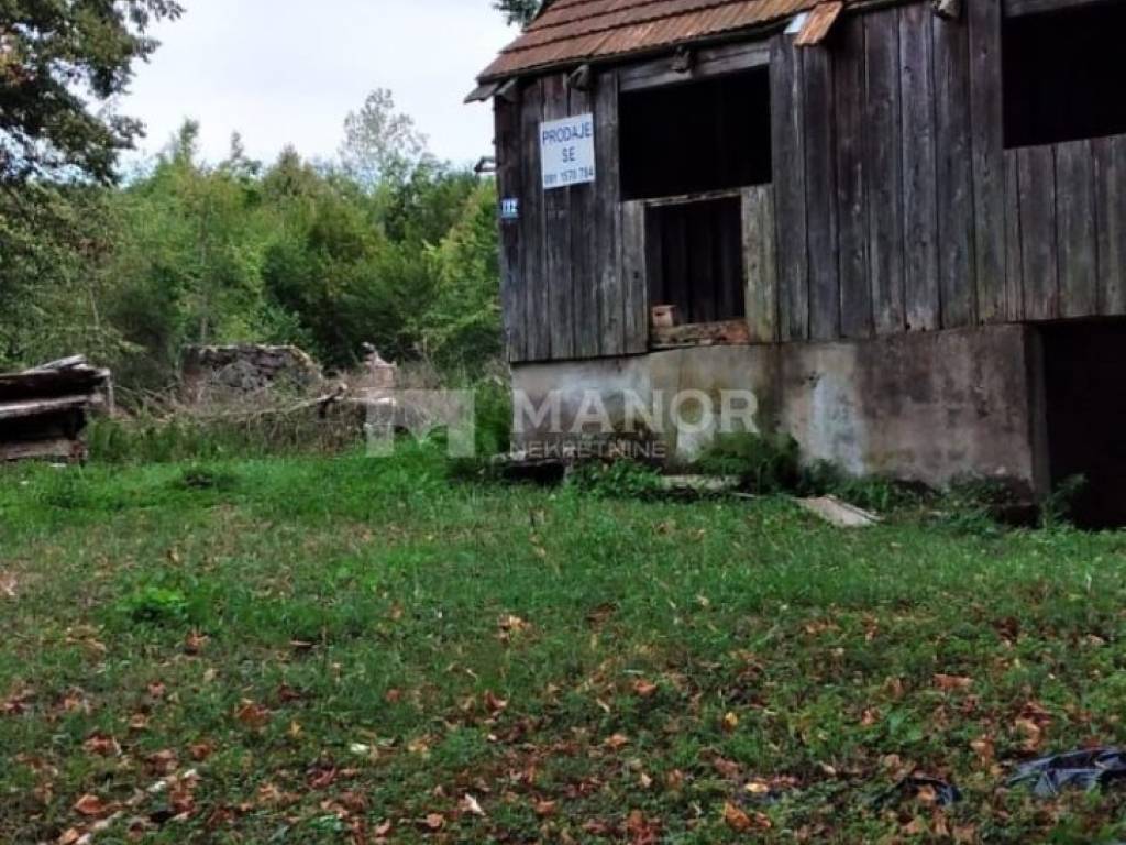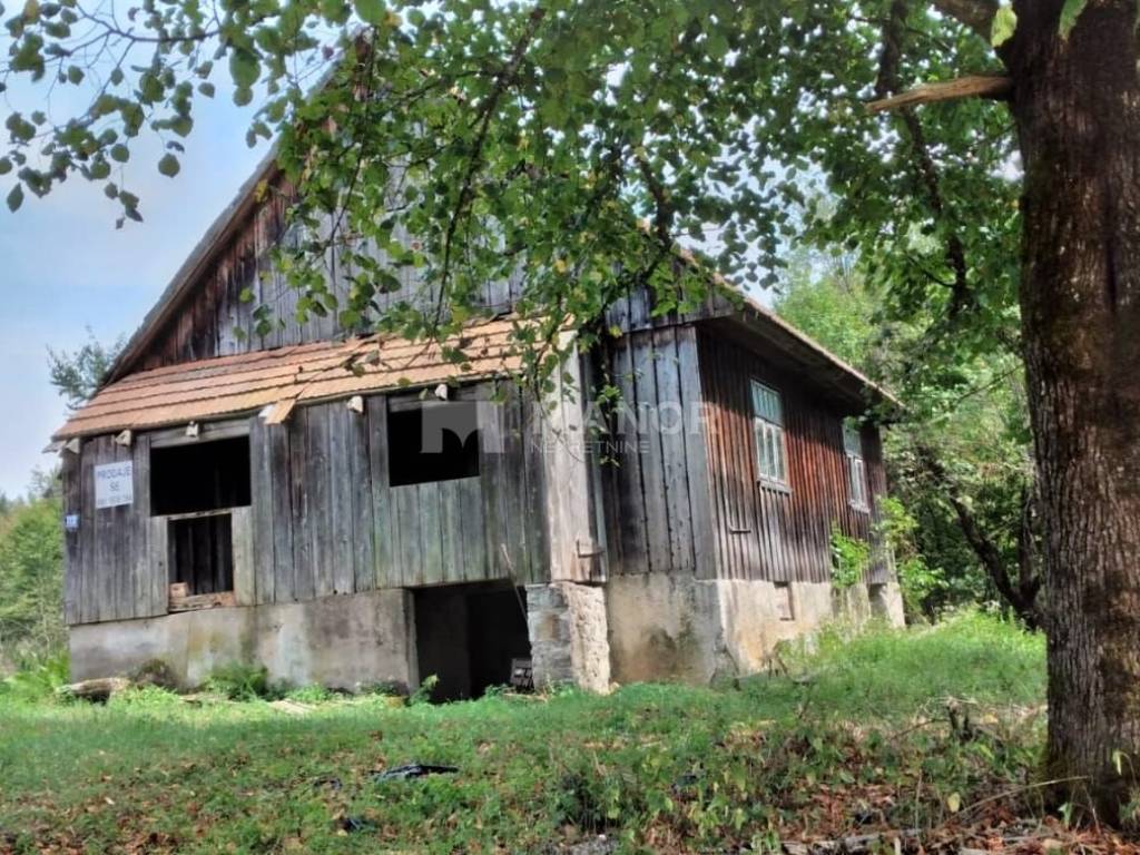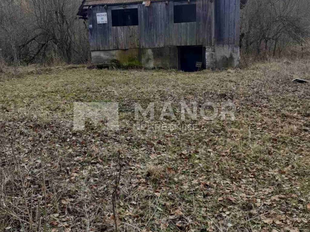 Zemljište sadrži staru drvenu kuću; smješteno pored asfaltirane ceste.