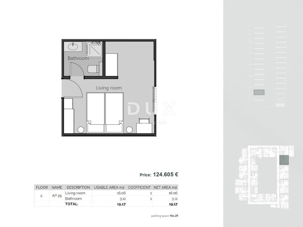 We present you a unique opportunity in Crikvenica - a city with a long tourist tradition and constant growth in demand. We offer a new luxury complex with 30 modernly equipped apartments and hotel rooms ranging in size from 14 to 28 m. This project combines contemporary design, smart technologies and an attractive location, just a few minutes' walk from the sea and the center. Investors are offered a guaranteed annual yield of 5%, with a realistic growth potential of 79% thanks to the extended season and professional management. Usage options: Personal use of the apartment or hotel unit Inclusion in the rental system with Full Property Management service (marketing, booking, reception and guest care, maintenance, financial reporting) - a worry-free investment with passive income. Complex facilities: Wellness and spa area with indoor pool, massages and treatments Restaurant and cafe bar on the ground floor 24/7 reception and guest services Parking space option (20,000) Interiors: Designer doors, Diere security entrance doors, bathrooms with moisture and impact-resistant Kerok furniture, large-format ceramics, matte sanitary ware with gold details, indirect lighting and a smart app-based management system. Location: Crikvenica offers ideal transport connections - close to Rijeka, Zagreb, Istria, the island of Krk with the airport and the A1 motorway. The city is known for its beaches, gastronomy and year-round tourism, which makes it one of the most sought-after destinations in Kvarner. Crikvenica Residence is not just real estate, but an investment in security, stable income and lifestyle. Do not miss the opportunity to become the owner of a part of this prestigious project!