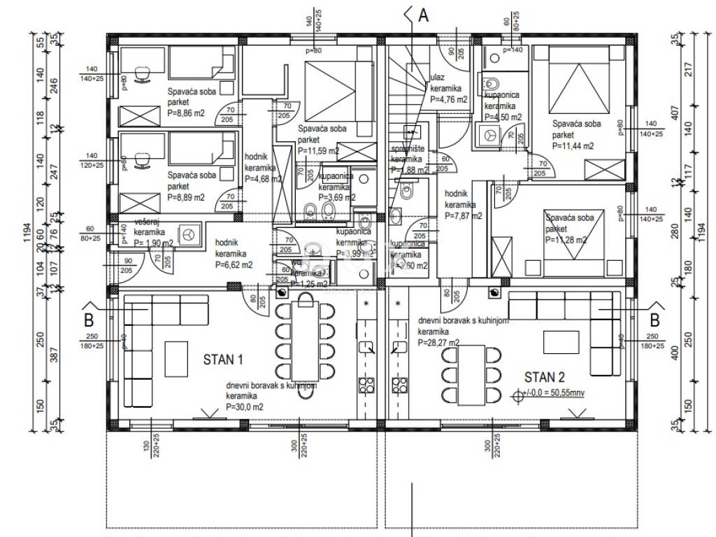 The city of Poreč, one of the most beautiful pearls of the Adriatic Sea, is located on the western coast of Istria. On the relatively small peninsula where the city emerged, traces of the meeting of the Slavic, Roman and Germanic worlds are still clearly visible today, which also testify to the multitude of changes - political, social and ethnic - that this Istrian town has experienced in history. The history of Poreč is a history of constant change, movement and turmoil, the instability of peoples, ups and downs, in which the history of new beginnings appears as a constant. This city constantly reveals traces of the lives of many civilizations and cultures that have built its urban and historical identity. Apartment 2. on the plans. The apartment of 74.28 m is located on the ground floor of a new building, 2.2 km from the sea. It consists of two bedrooms, two bathrooms, a storage room and a spacious open space that includes a kitchen, dining room and living room. The apartment has a 100 m private garden and two parking spaces, with the possibility of installing a charging station for electric vehicles. The price includes everything except furniture and lighting. The building is currently in the unfinished phase, and payment in stages is possible (30% + 30% + 30% + 10%).