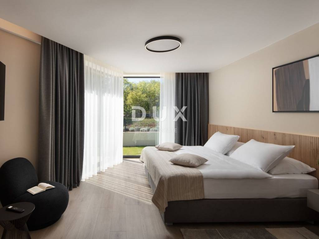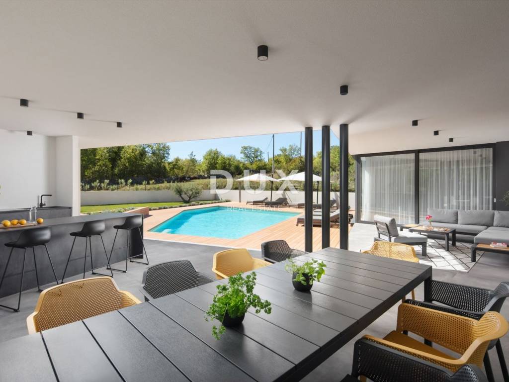 On the southeastern coast of Istria, where green hills meet the sea, where nature and heritage unite, there are two towns of similar size with different, but mutually complementary characters - Labin and Rabac. The picturesque town of Labin rises on a 320m high hill, only four kilometers from the white pebble beaches of Rabac. Interwoven with a rich history and mining that marked this area, Labin, which was briefly declared an independent republic, is today a fascinating city of contradictions; old and new, history and present, tourism and art. Not far from the town of Labin, a modern villa surrounded by nature is for sale. The property represents a harmony of space, needs, functions, construction and beauty, and the microlocation offers an authentic experience of a small Istrian town, intimacy and relief from every hectic effort and noise, while at the same time being close to the sea and urban amenities of the town of Labin. In addition to the location that provides complete comfort and privacy, the property is also characterized by the quality of construction, which guarantees long-term satisfaction and quality of living. The villa, with its architecture, blends into the settlement and landscape in terms of form and color, creating a synergy of the natural environment and modern design. It is defined as one residential unit whose area is distributed over two tastefully decorated and well-equipped floors of a functional floor plan. The ground floor consists of a spacious open concept that unites the kitchen, dining room and living room with access to a spacious covered terrace that contains a summer kitchen, outdoor toilet and storage room. The ground floor floor plan is complemented by a gym with fitness equipment, a bedroom with a private bathroom, a guest toilet, a laundry room and a technical room with storage room. The first floor consists of a hallway on the gallery and three bedrooms with private bathrooms and private terraces. The yard is ambientally and horticulturally decorated, and complete harmony is provided by a swimming pool with a sunbathing area. The excellent location and the spatial organization of the interior and exterior of this property provide an opportunity for a comfortable family life or an investment investment in a tourist rental business.