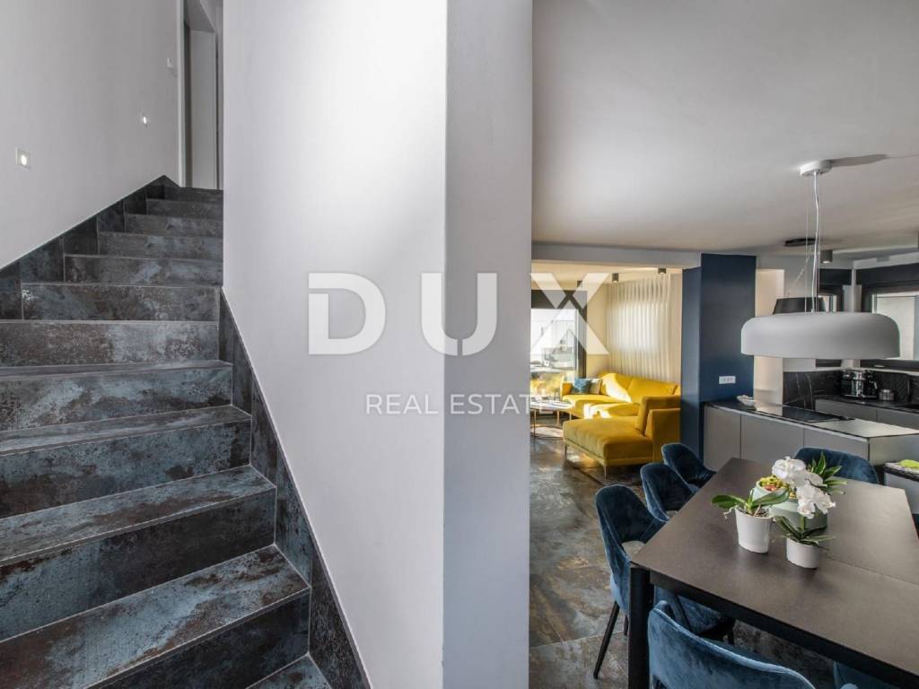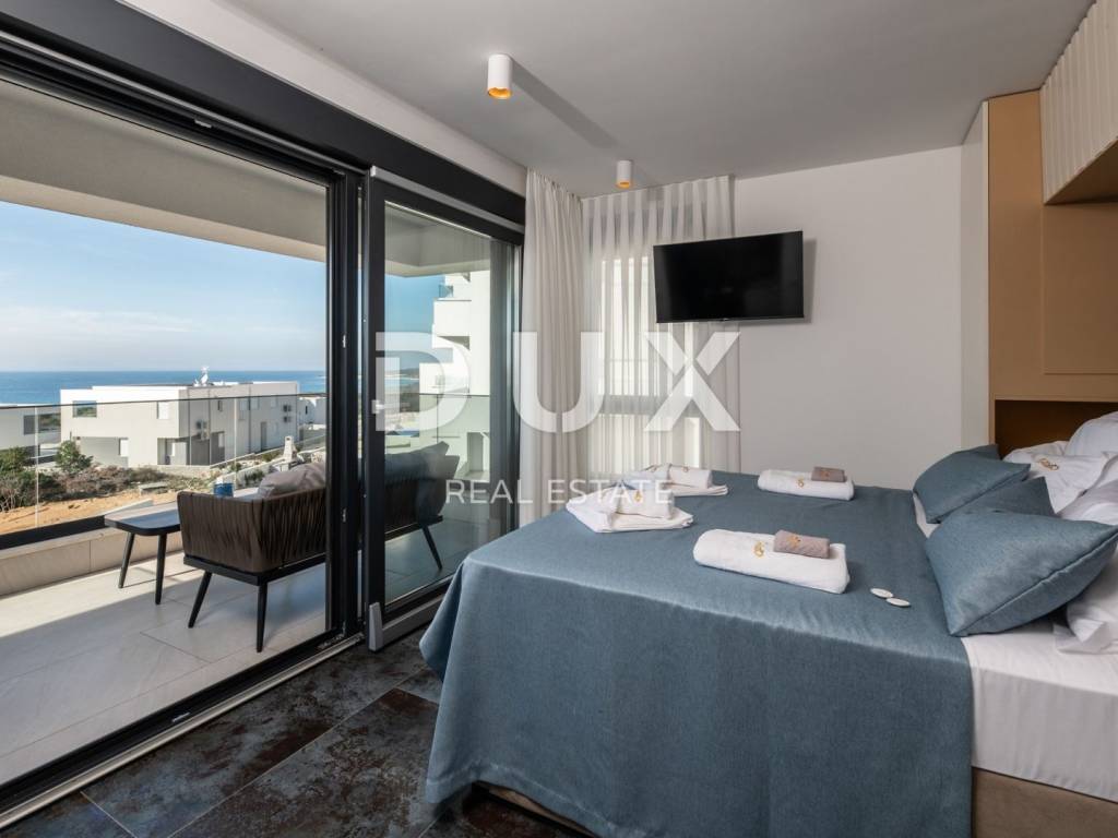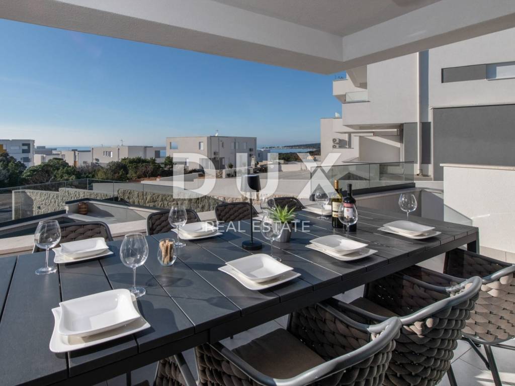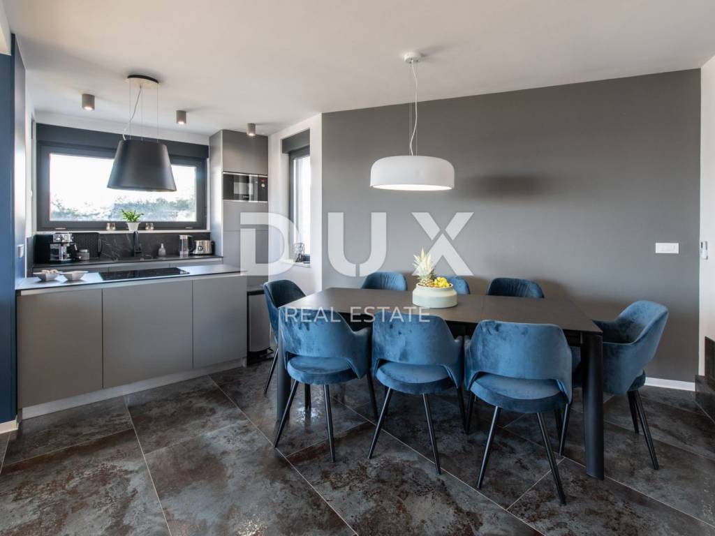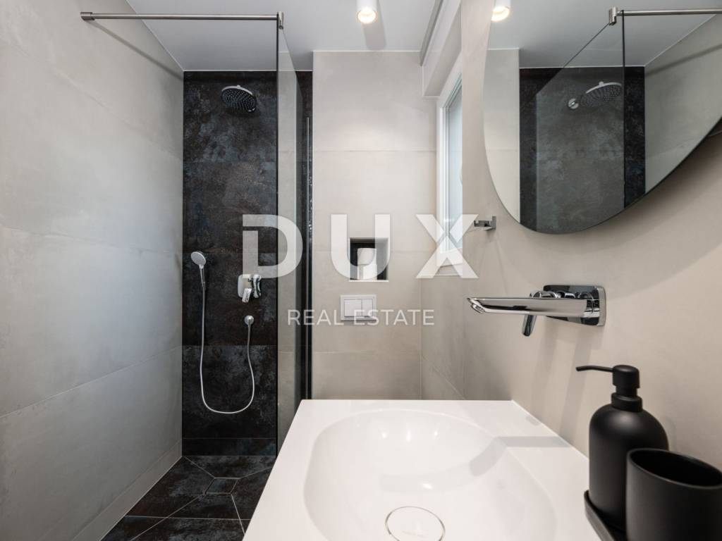 In a quiet location in Novalja, just 500 meters from the sea, there is a modern luxury villa from 2024, divided into two separate residential units. We present to you the first unit (left), which extends over 176.5 m of living space and an additional 35 m of terraces and balconies. This unit offers five spacious bedrooms and five modernly decorated bathrooms, a living room filled with natural light and a fully equipped kitchen and dining room. It stands out with a private 18 m swimming pool, a sunbathing area and a partially landscaped garden, as well as its own sauna and a wellness or fitness area. The interior is decorated in a minimalist style with a touch of luxury, equipped with underfloor heating, air conditioning, smart TVs, fast Wi-Fi and top-quality materials in all rooms, including designer bathrooms and carefully selected furniture. A landscaped garden with a barbecue and an outdoor dining area provides additional space for relaxation, while the view of the sea and the surrounding landscape further contributes to the impression of complete privacy and peace. The villa is located in an ideal position, sufficiently secluded from the city bustle, and yet only a few minutes walk from the center of Novalja, the nearest beach, shops, bakery and bus station to Zrće. Zadar Airport is 86 kilometers away. This property represents an excellent opportunity for luxurious family life, a vacation with a high degree of privacy or an investment in a tourist rental without additional investments, since it is sold fully furnished and ready to use. The island of Pag - an island of stone, salt and unique energy Known as the island of the moon landscape, it is one of the most special pearls of the Croatian Adriatic. Its dramatic beauty stems from the contrast: raw stone and clear sea, untouched nature and dynamic entertainment, millennial tradition and modern luxury. Pag is home to top-notch delicacies - the famous Pag cheese, lamb and salt - but also unique lace, under UNESCO protection. Authentic Mediterranean towns like Pag and Kolan offer peace and tradition, while Novalja and Zrće attract guests from all over the world who are eager for music, life and freedom. The island offers numerous hidden coves, hiking and cycling trails, clear sea and a rich cultural heritage. Whether you come for hedonism, relaxation, exploration or investment Pag offers something special. It is not just a destination it is an experience. Dear potential buyers, we are glad that you are interested in the properties from our offer. For more information and an agreement regarding a property viewing, please feel free to contact us. Property viewing is possible only with the signing of a real estate brokerage contract.