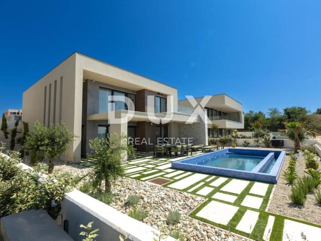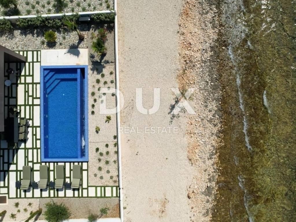 We are selling a beautiful villa under construction right on the beach. It consists of two floors and an organized garden. On the ground floor there are living rooms, rooms for household maintenance, a garage for two cars, a sunbathing area, a swimming pool and other facilities for daily activities. Private rooms are located on the first floor; 4 bedrooms with private bathrooms with access to a large balcony with a wonderful view of the sea. The house has a smart management system, which makes it easier to maintain the property and enjoy it more comfortably. Sisem Loxone Smart Home can be controlled via a switch, smartphone, tablet (remote access) or computer. The villa is equipped with a heat pump for heating and cooling with high energy efficiency and contributes to the great comfort of living. The internal heating and cooling units of the facility are placed in the suspended ceiling, which improves the visual identity of the facility's interior. Domestic hot water is also heated by a heat pump. This system contributes to the high energy efficiency of the villa itself, thus protecting the environment. In the garden there is an overflow heated pool. The pool is heated by a heat pump that is independent of the heat pump for heating and cooling the building.