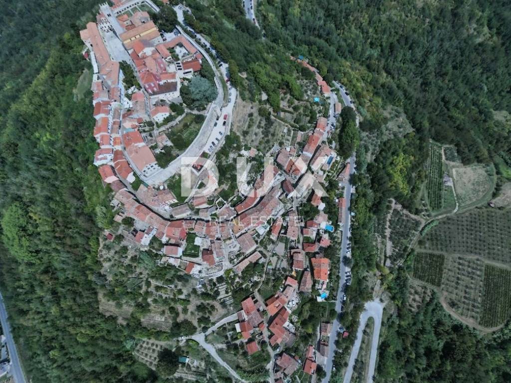 U srcu slikovite starogradske jezgre Motovuna prodaje se zemljište s infrastrukturom i četiri ruševna kamena objekta u nizu, autentične istarske gradnje.