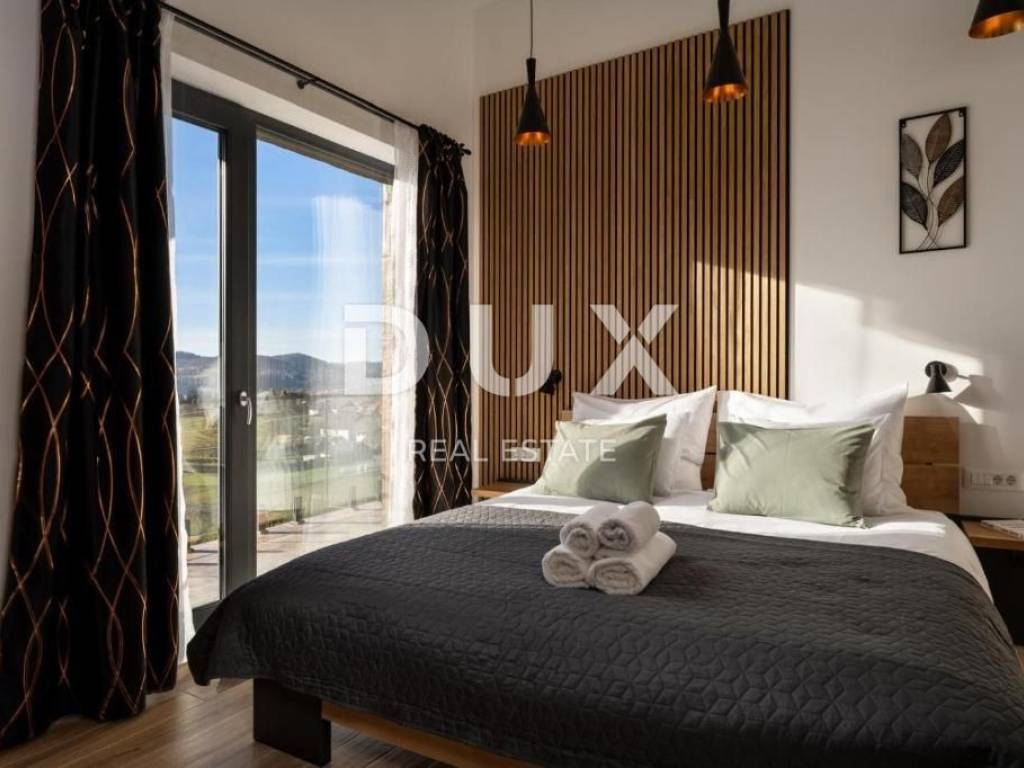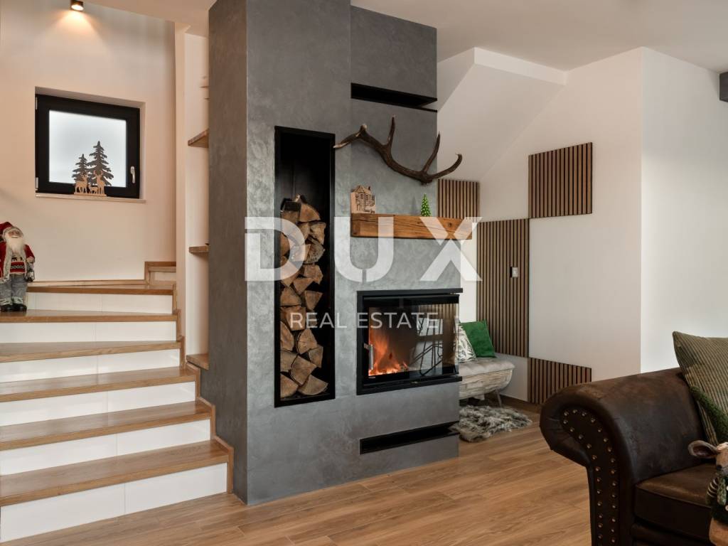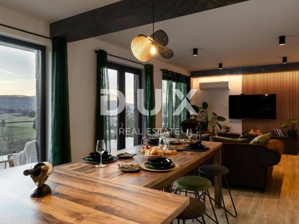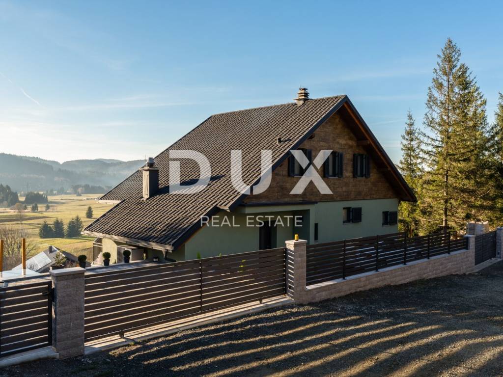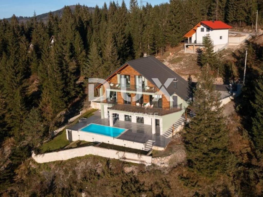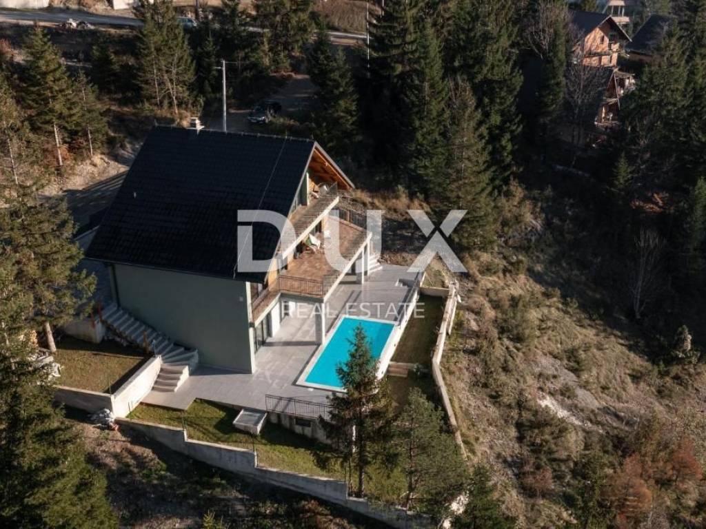 We mediate in the sale of a unique villa in the area of Gorski Kotro in Ravna Gora. This incredible villa is located in a prime location with a panoramic view of the valley, mountains and greenery. It was completed in 2023 and is being sold fully furnished. It is equipped with the highest possible standards that are currently on the market. On a geometrically perfect plot, there is a villa on three floors, a parking lot, a storage room, a heated swimming pool and a garden with cascades. The villa consists of: GROUND FLOOR - wellness room including a sauna, jacuzzi, two bathrooms and a walk-in shower - socializing room including a tavern with a fireplace and a kitchen, and a wine cellar - both rooms have access to a beautiful covered terrace and heated pool with a view of the surrounding greenery - additional storage LEVEL 1ST FLOOR - entrance hall and hallway - spacious 'open space' living room with kitchen and dining room where there is also a wood-burning fireplace - bedroom with its own bathroom - additional guest bathroom - storage room where there is a heat pump for underfloor heating, connection for solar panels and other equipment - terrace along the entire length of the villa LEVEL 2ND FLOOR - two bedrooms each with their own bathroom and storage room - shared balcony with a view Equipment includes: - underfloor heating with a heat pump - Daikin air conditioning - heated pool - three-layer anthracite-colored joinery - 15 cm facade - custom-made furniture Don't miss this opportunity for a villa that offers an escape from the city noise, very good transport connections and amenities within an hour times such as Golubinjak forest park, Mrzle vodice, Kupa source, Vražiji prolaz, Zeleni vir, Stara Sušica, Lake Baje, Risnjak, Plitvička jezera and the like.